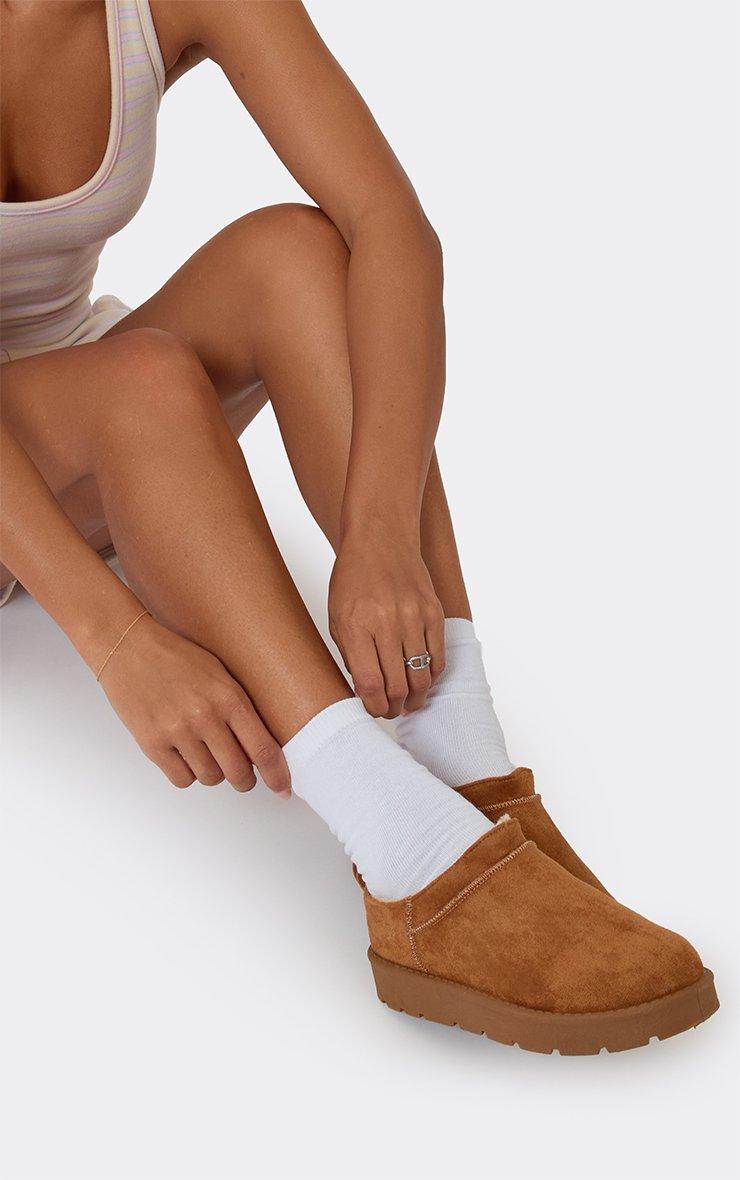 Cola Cola Faux Fur Lining Mini Ankle Boot In Chestnut Faux Suede