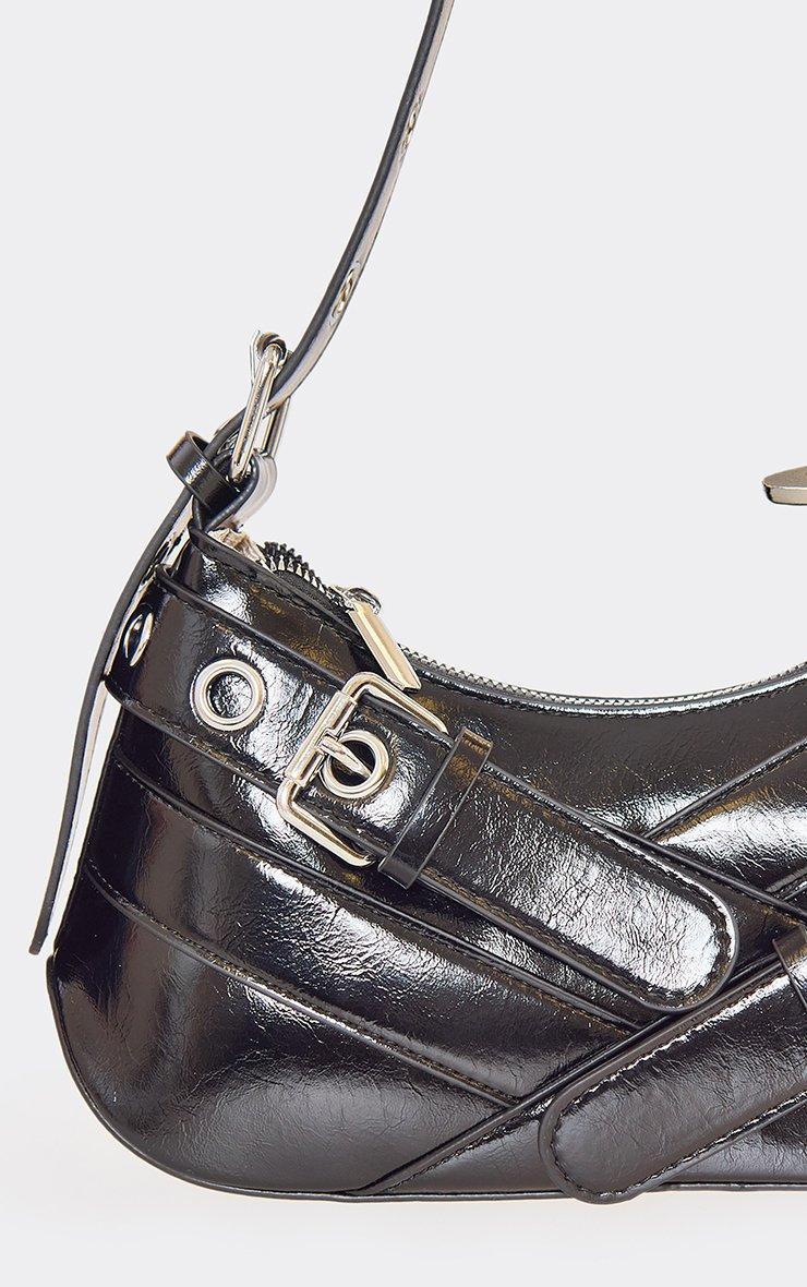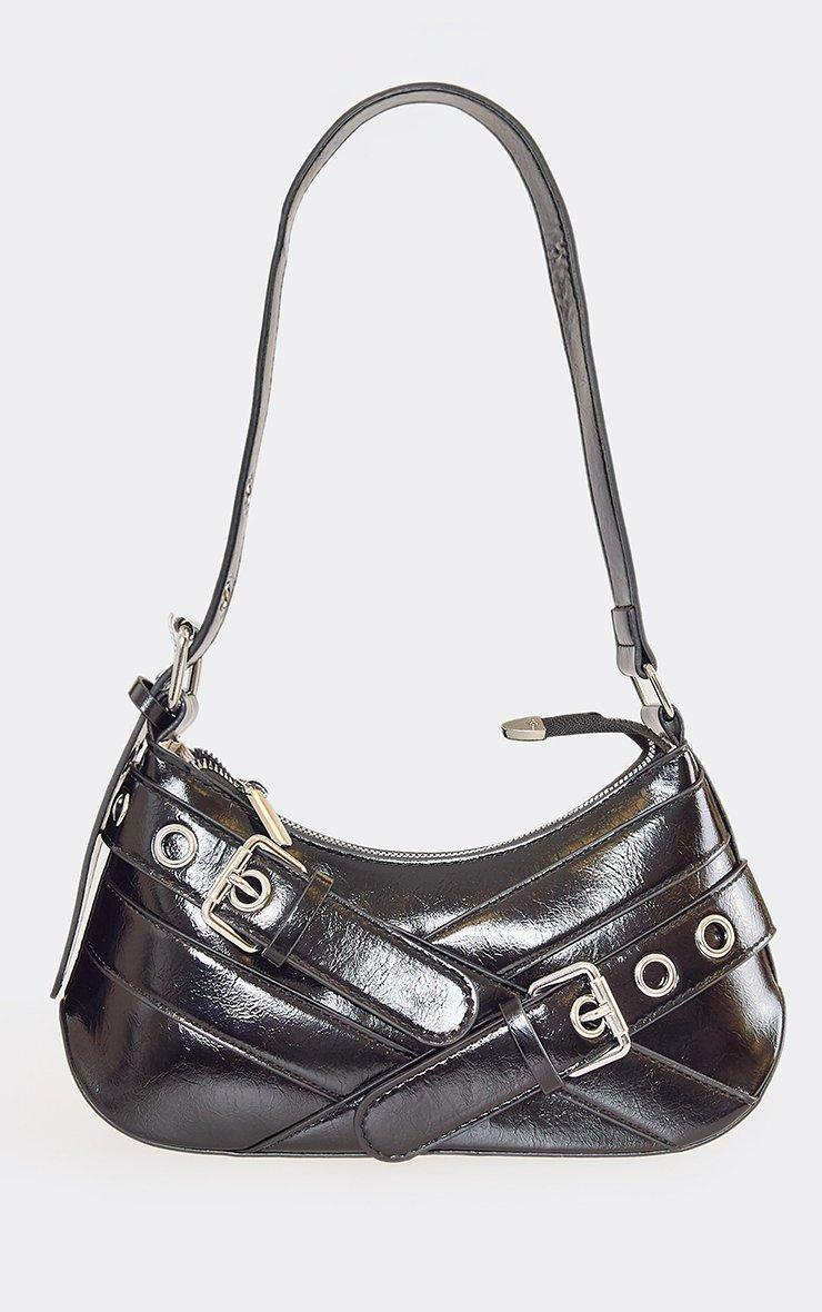 Harmony Cross Buckle Detail Shoulder Bag In Black Faux Leather