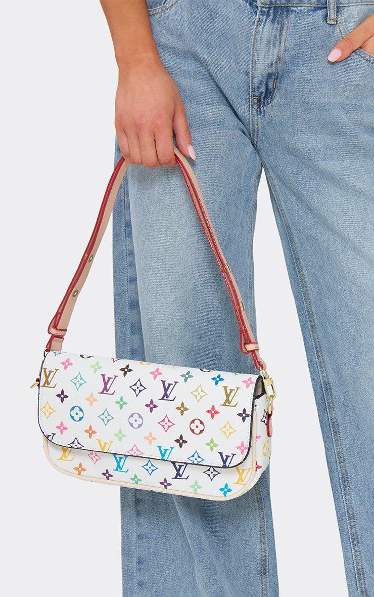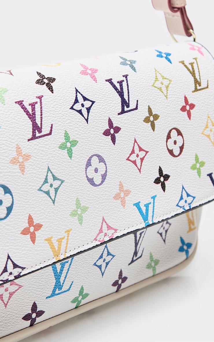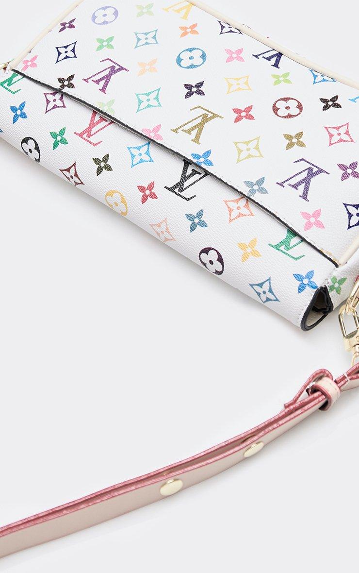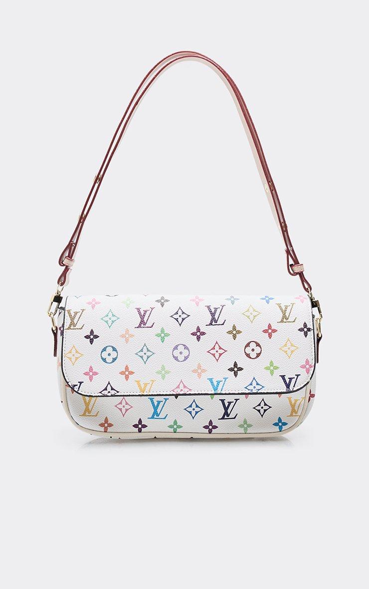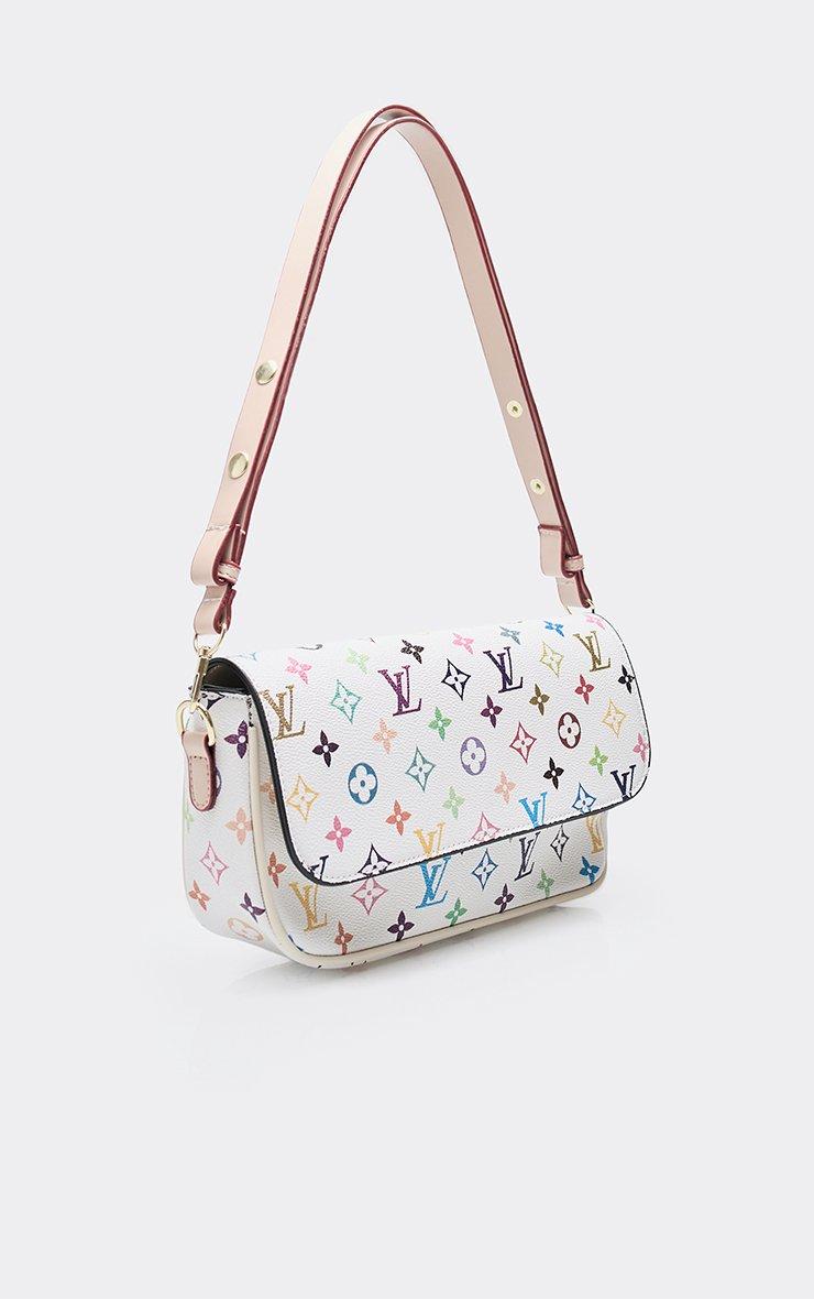 Margo Printed Detail Rectangle Shaped Shoulder Bag In White Faux Leather