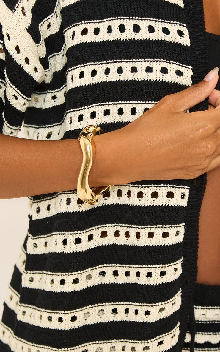 Chunky Wave Detail Bangle Bracelet In Gold
