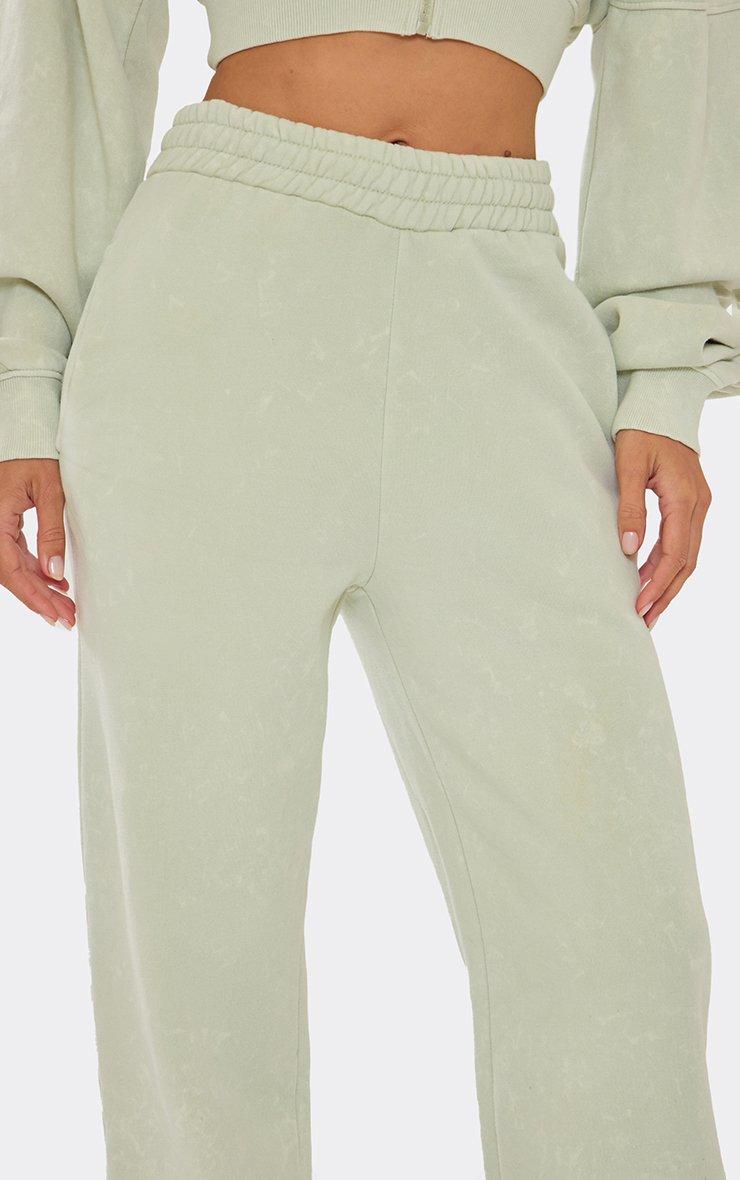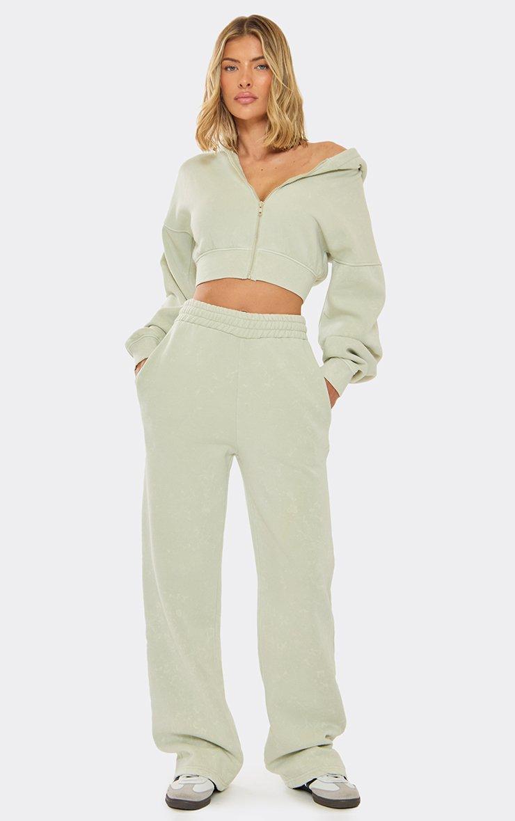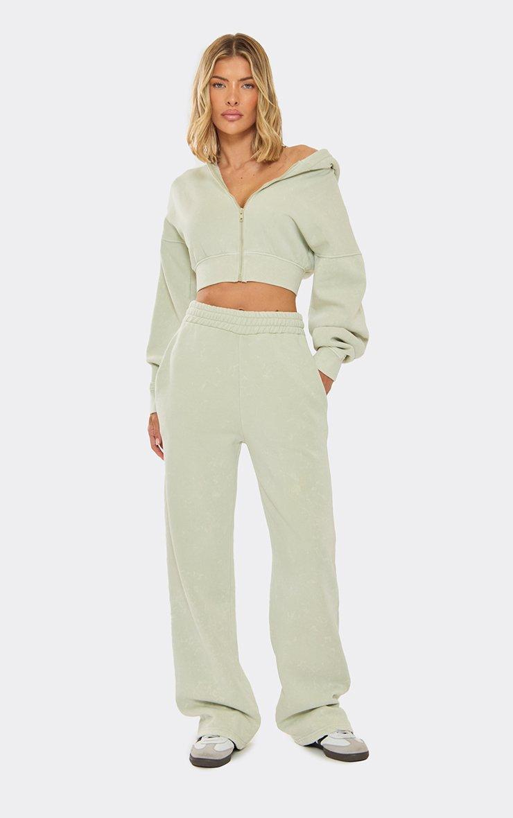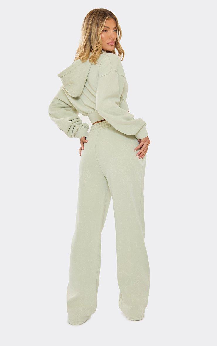 High Waist Oversized Wide Leg Joggers In Washed Sage Green
