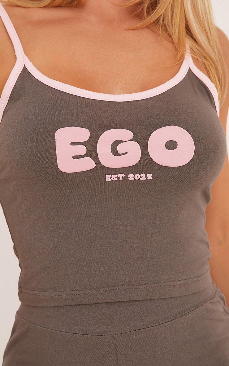 Get that model off duty look with this top. Featuring a charcoal material, a scoop neck, an ego bubble slogan and a cropped length.