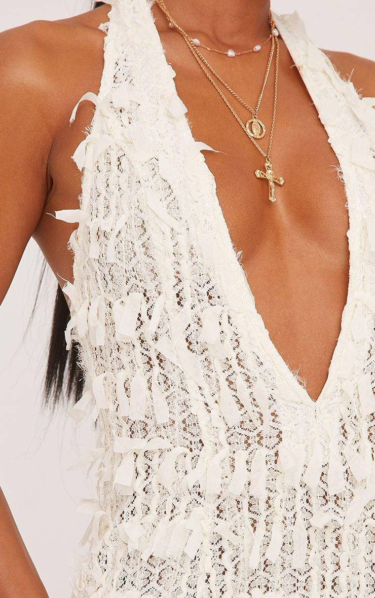 Our new festival collection just dropped and we're obsessed with this dress doll. Featuring a cream textured material, an extreme plunge neckline and a mini length.
