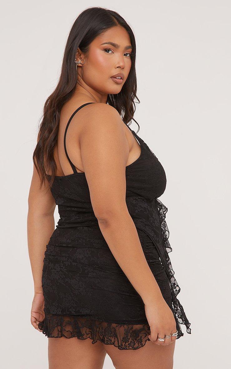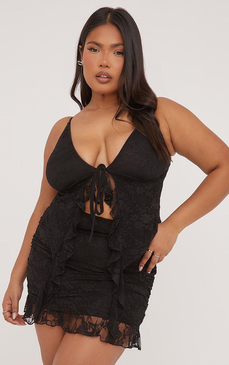 Plus Tie Front Frill Detail Cami Top In Black Lace