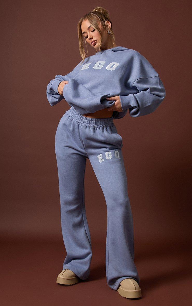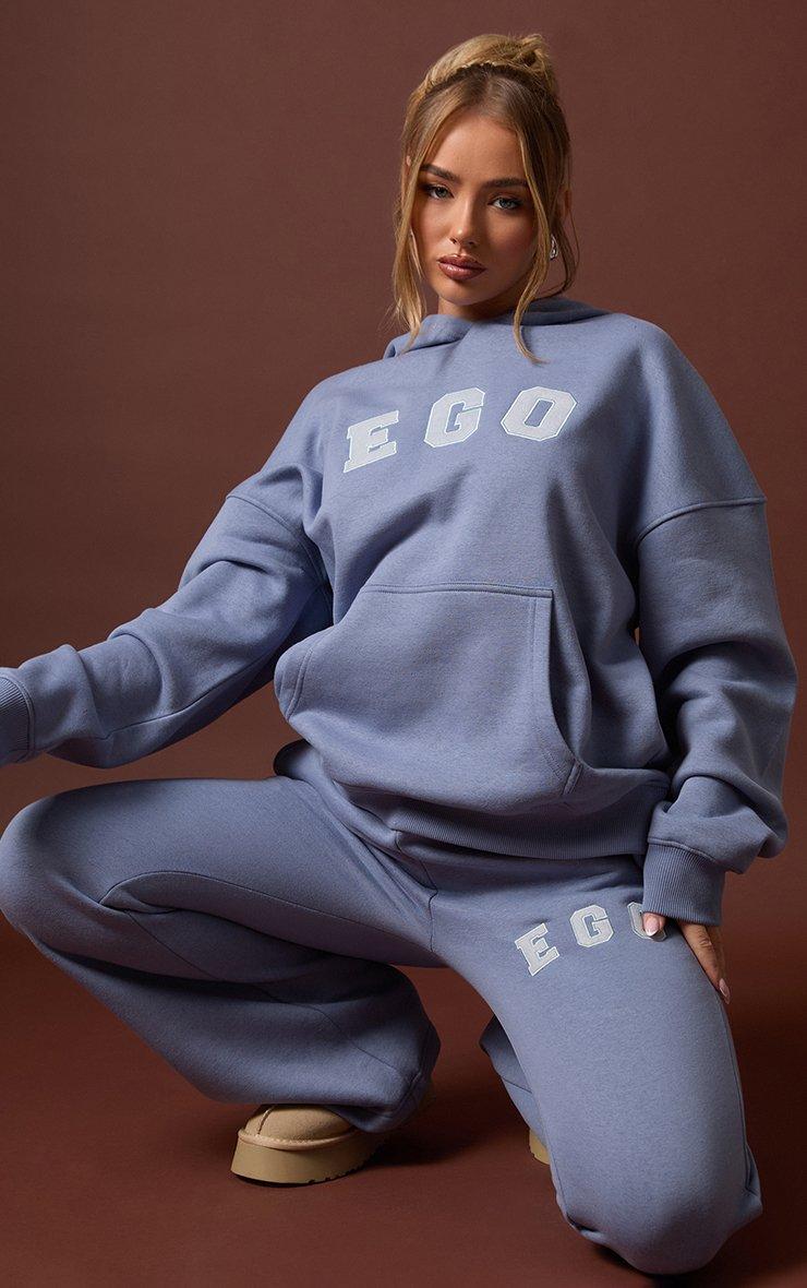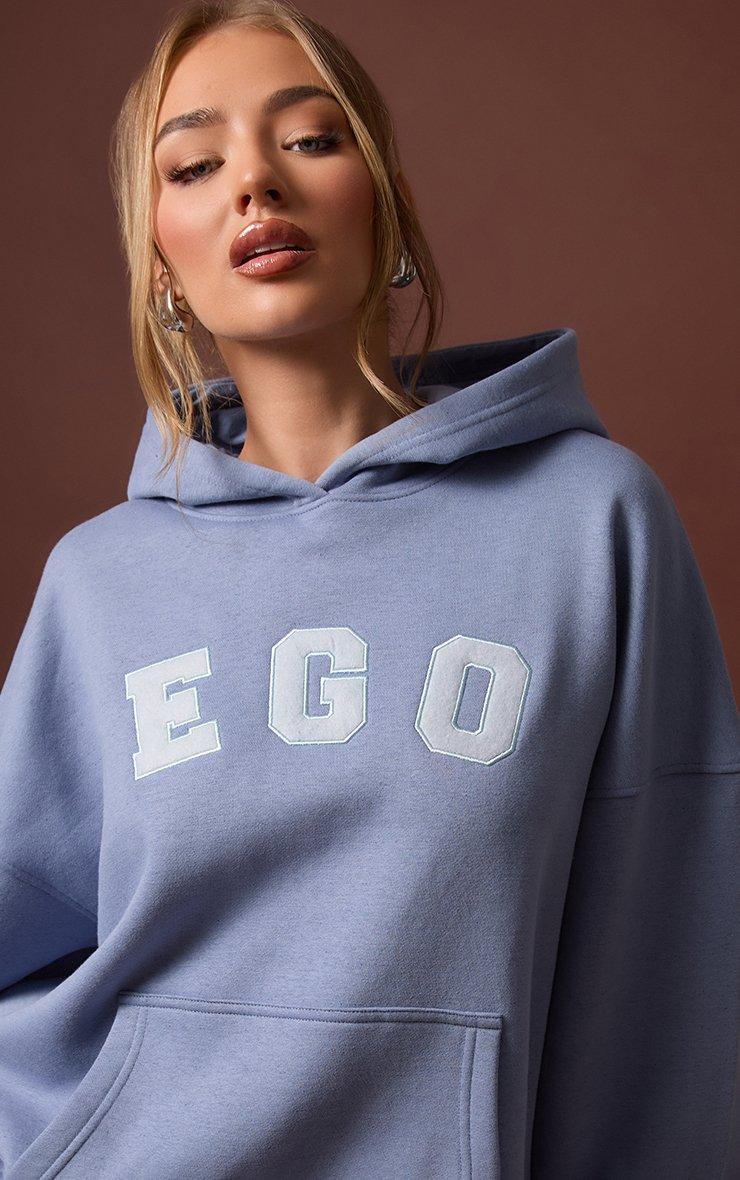 Level up lazy days with our Oversized Ego Graphic Slogan Print Hoodie in Dusky Blue. This oversized slogan hoodie boasts a dreamy dusky blue tone and bold EGO graphic. Style this graphic hoodie with the matching joggers for the ultimate lounging look!