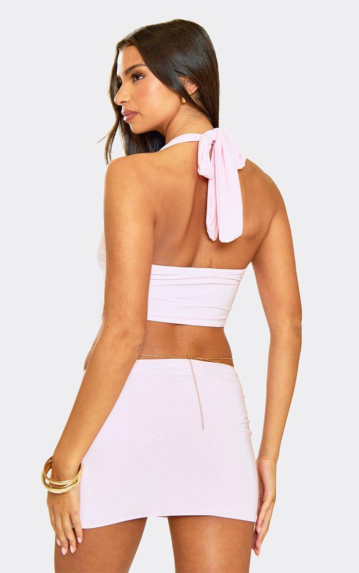 Mid Rise Trim Detail Mini Skirt In Baby Pink