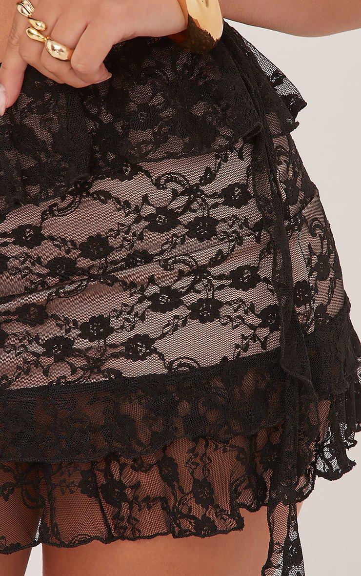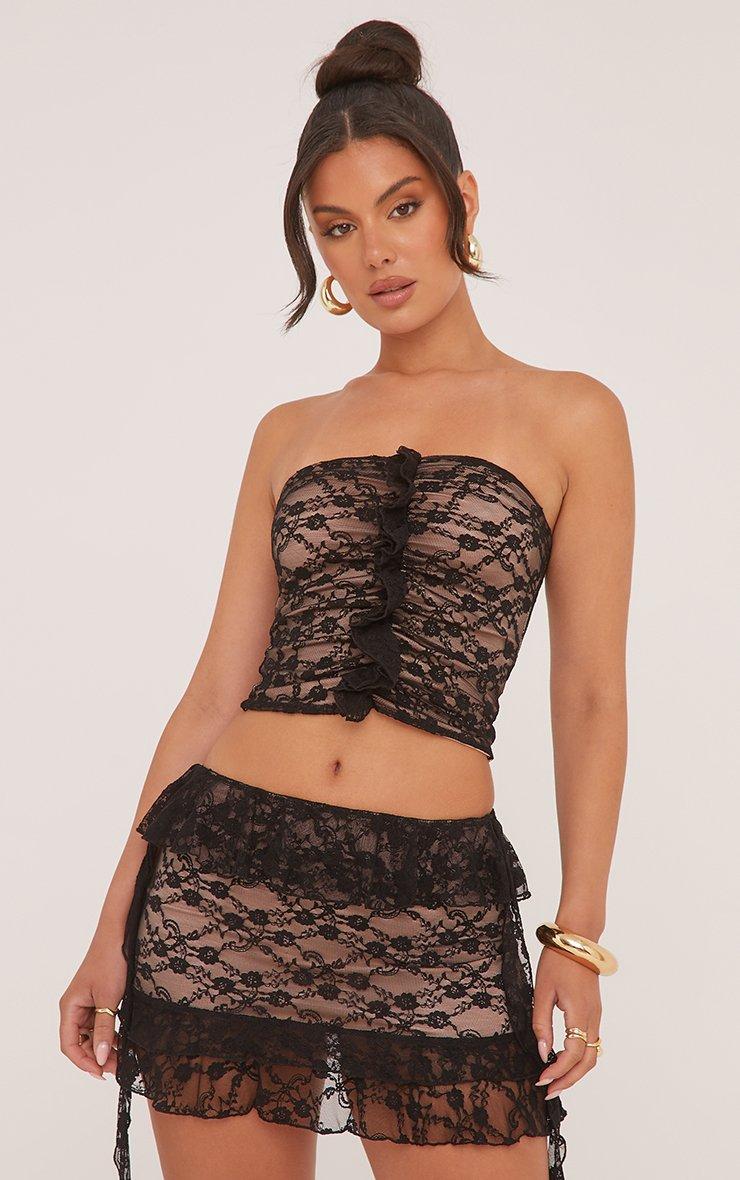 Low Rise Nude Underlay Frilly Mini Skirt In Black Lace