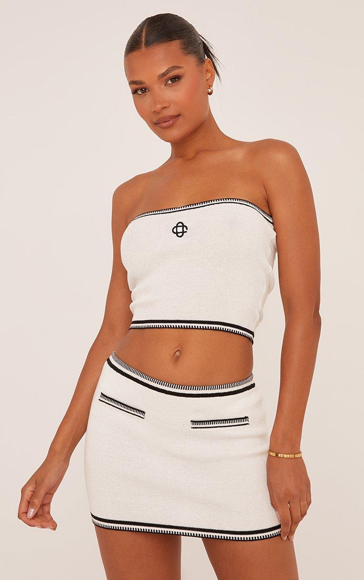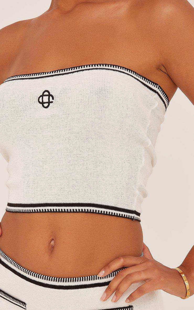 Bandeau Logo Detail Contrast Binding Crop Top In White Knit
