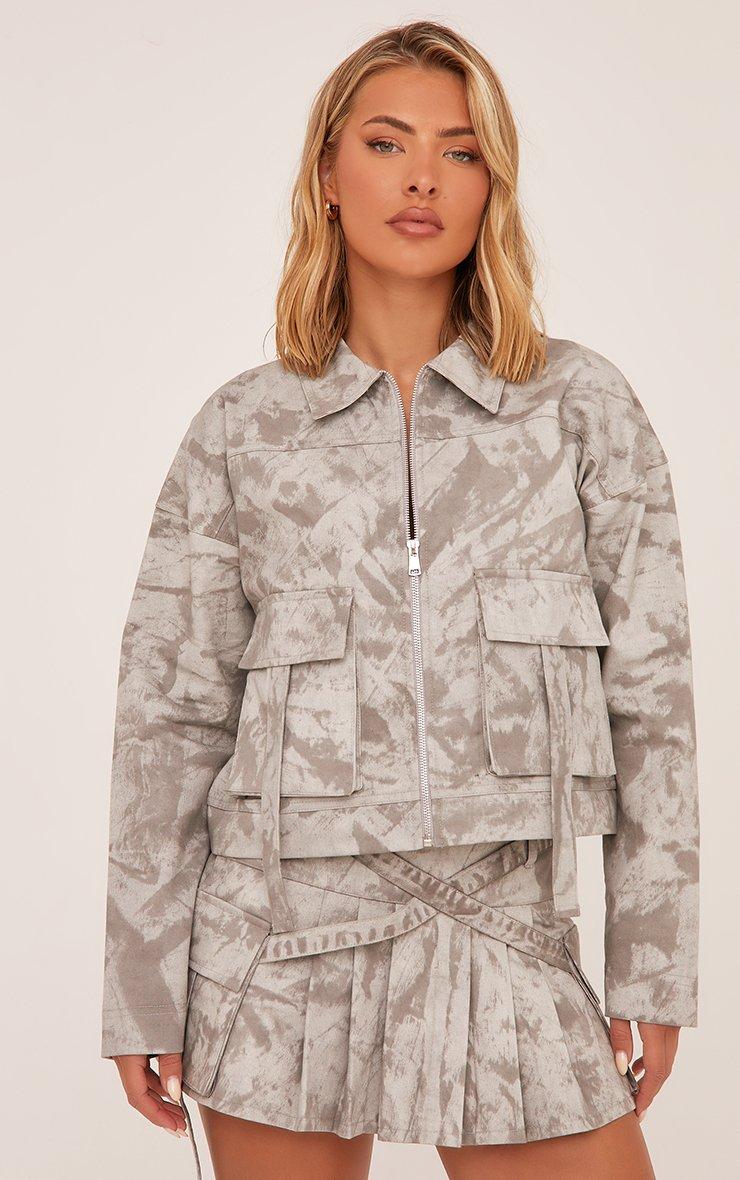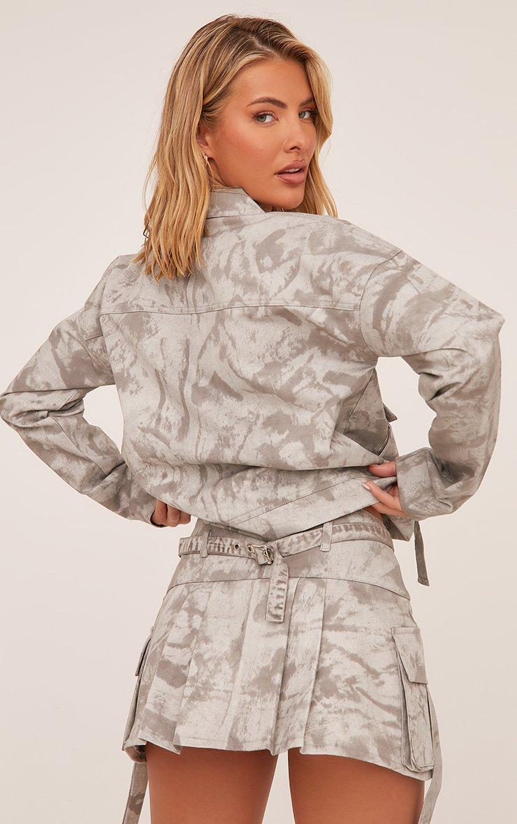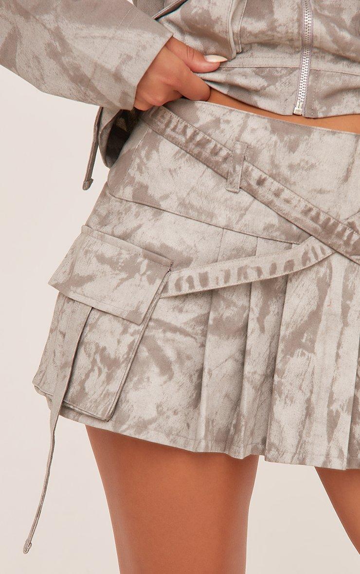 Take on your day the right way with this skort. Featuring a grey acid wash material, a mid rise fit, a belted waist, a cargo design and pleated details.