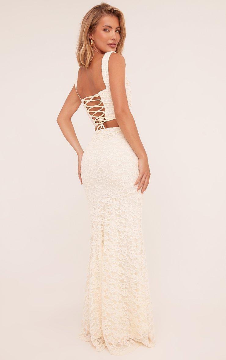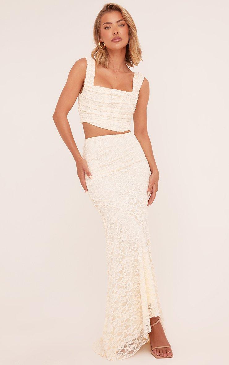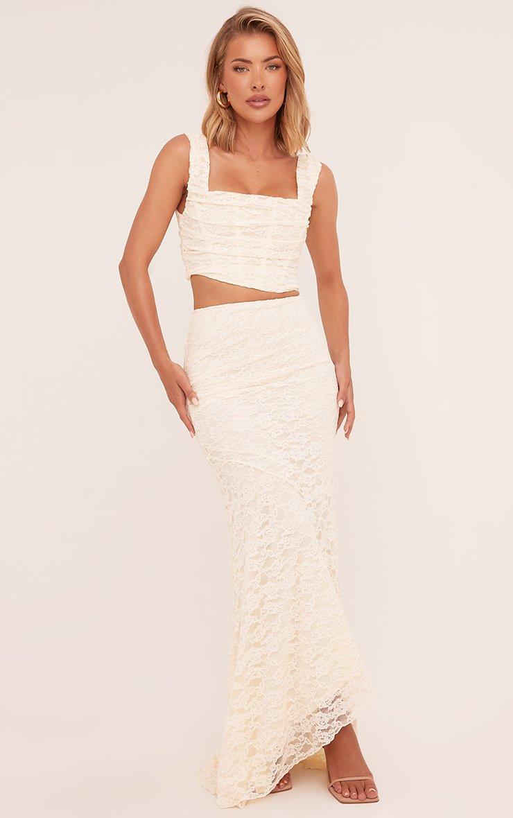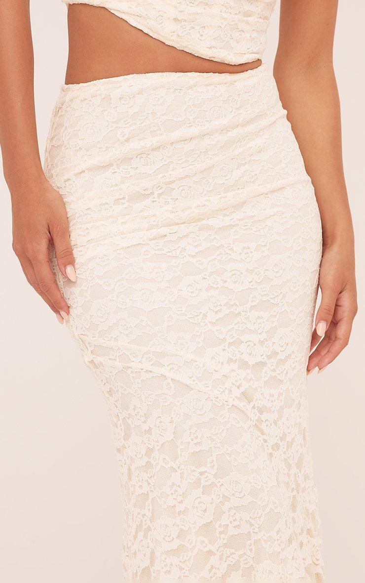 High Waist Asymmetric Maxi Skirt In Cream Lace