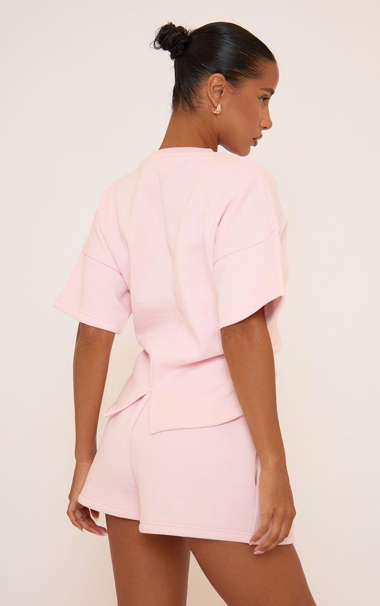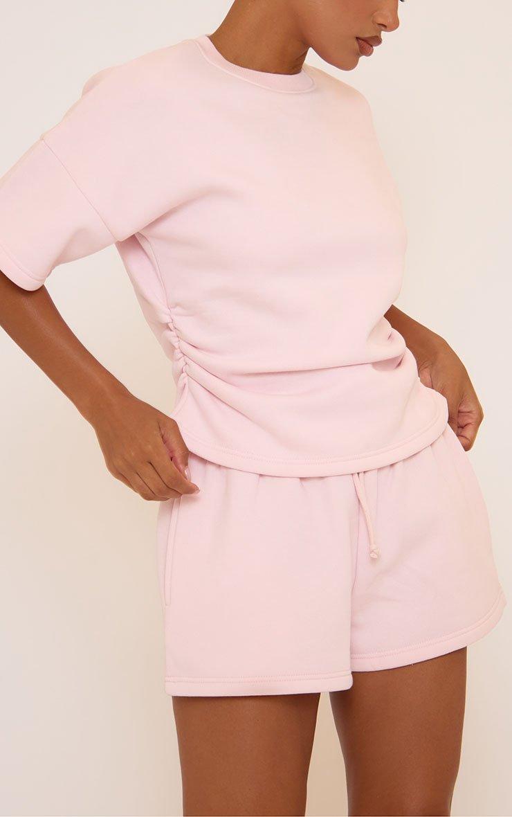 Mid Rise Drawstring Waist Mini Sweat Shorts In Pink