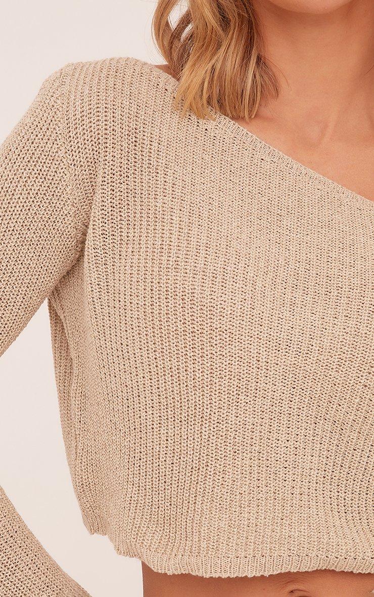 Long Sleeve Off The Shoulder Cropped Jumper In Stone Knit