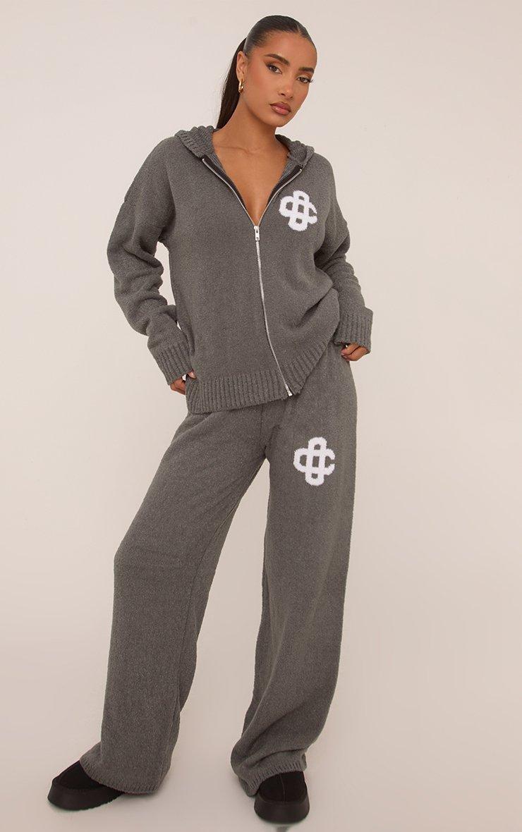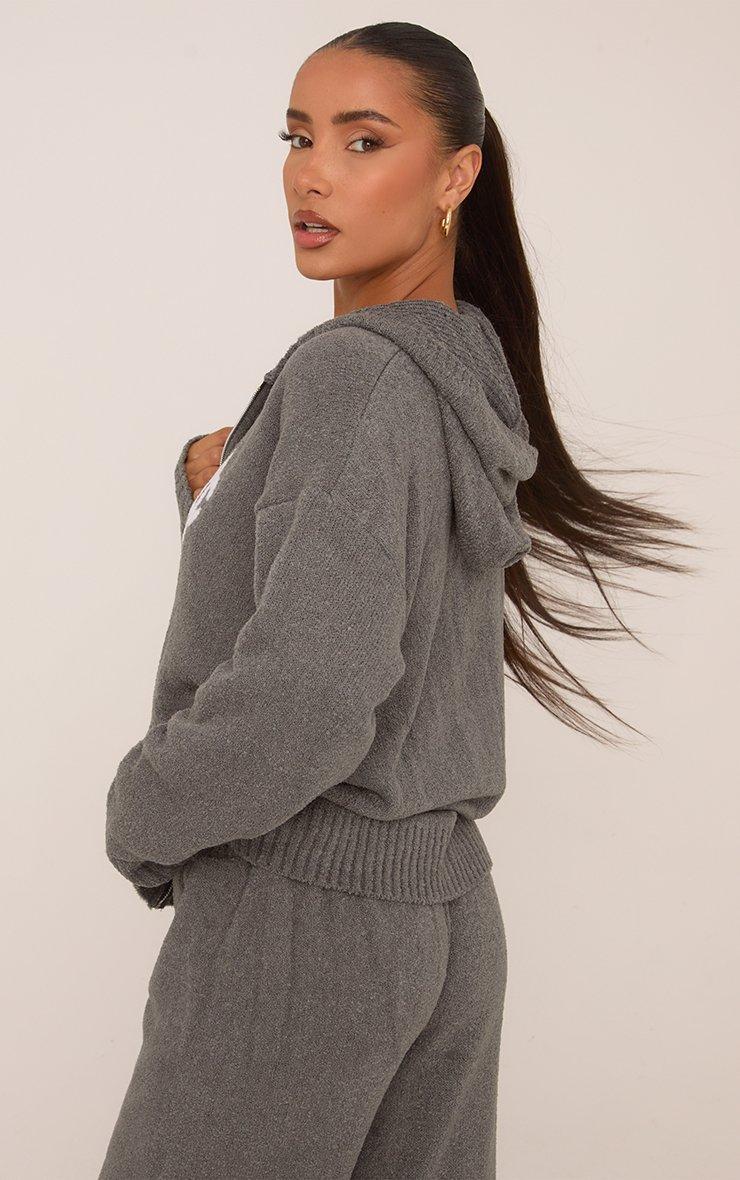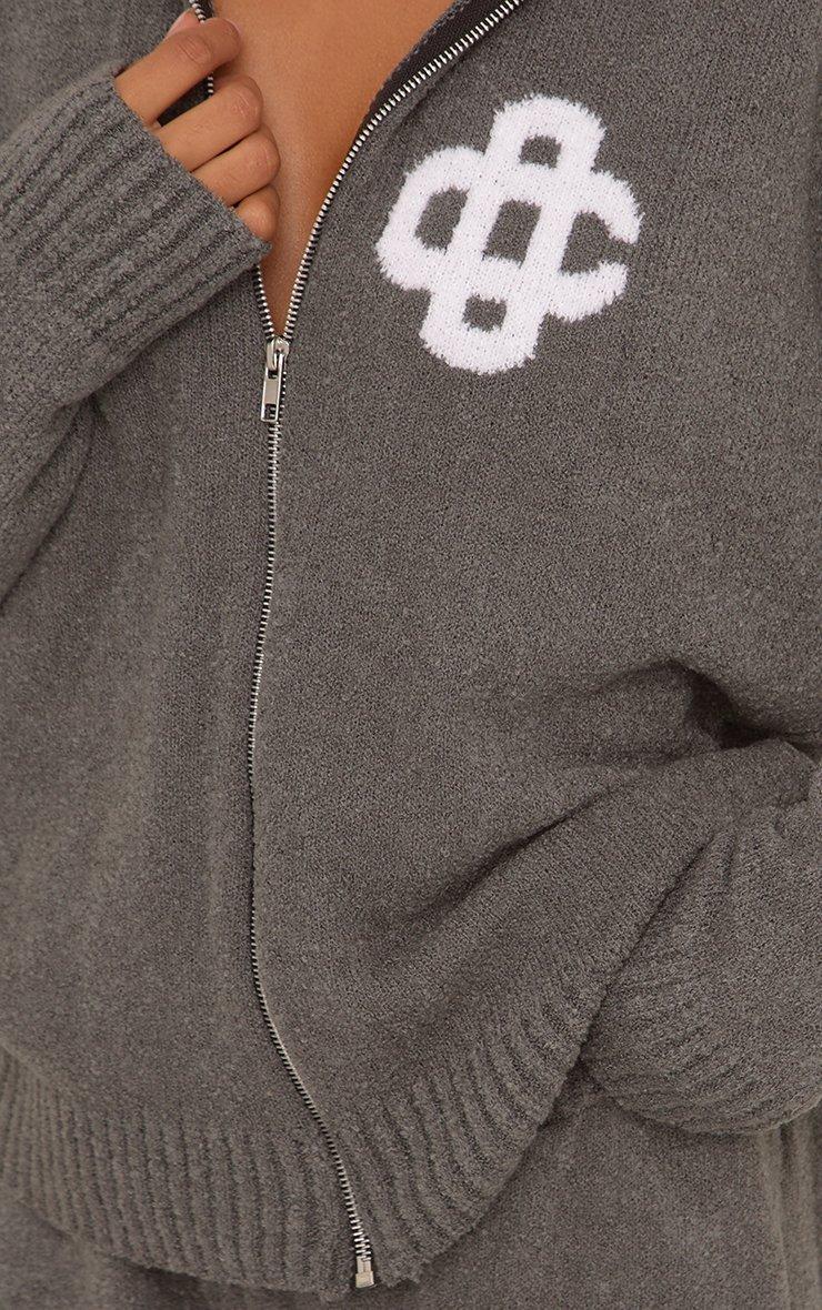 Cosy meets chic, doll! Featuring a grey fluffy knit material with long sleeves, a zip-up front, and swirl detailing, this hoodie is the ultimate blend of comfort and style.