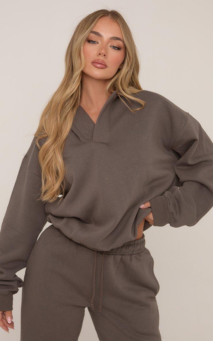 Long Sleeve V Neck Oversized Hoodie In Charcoal