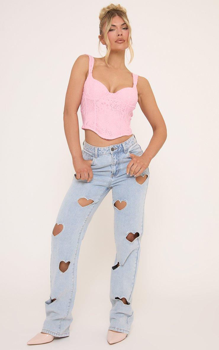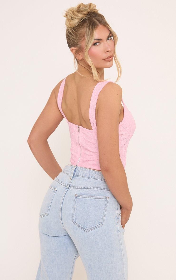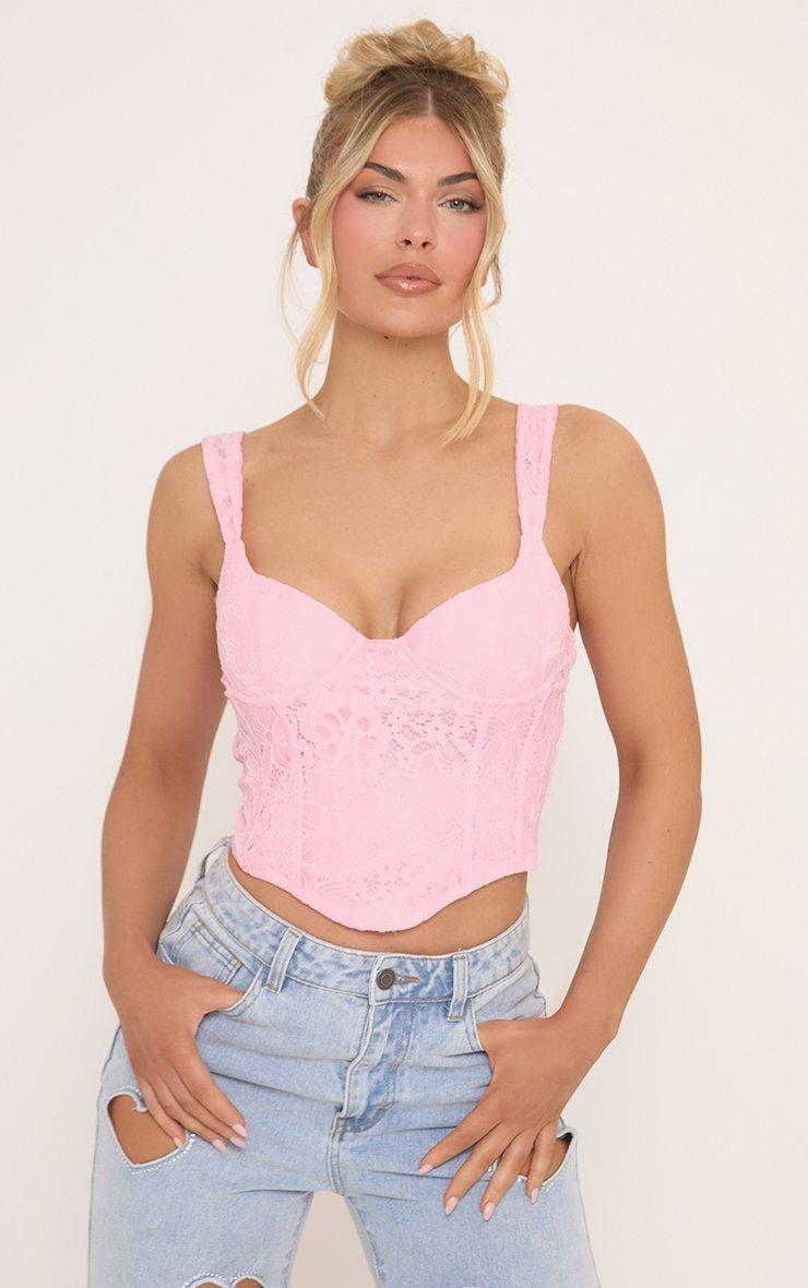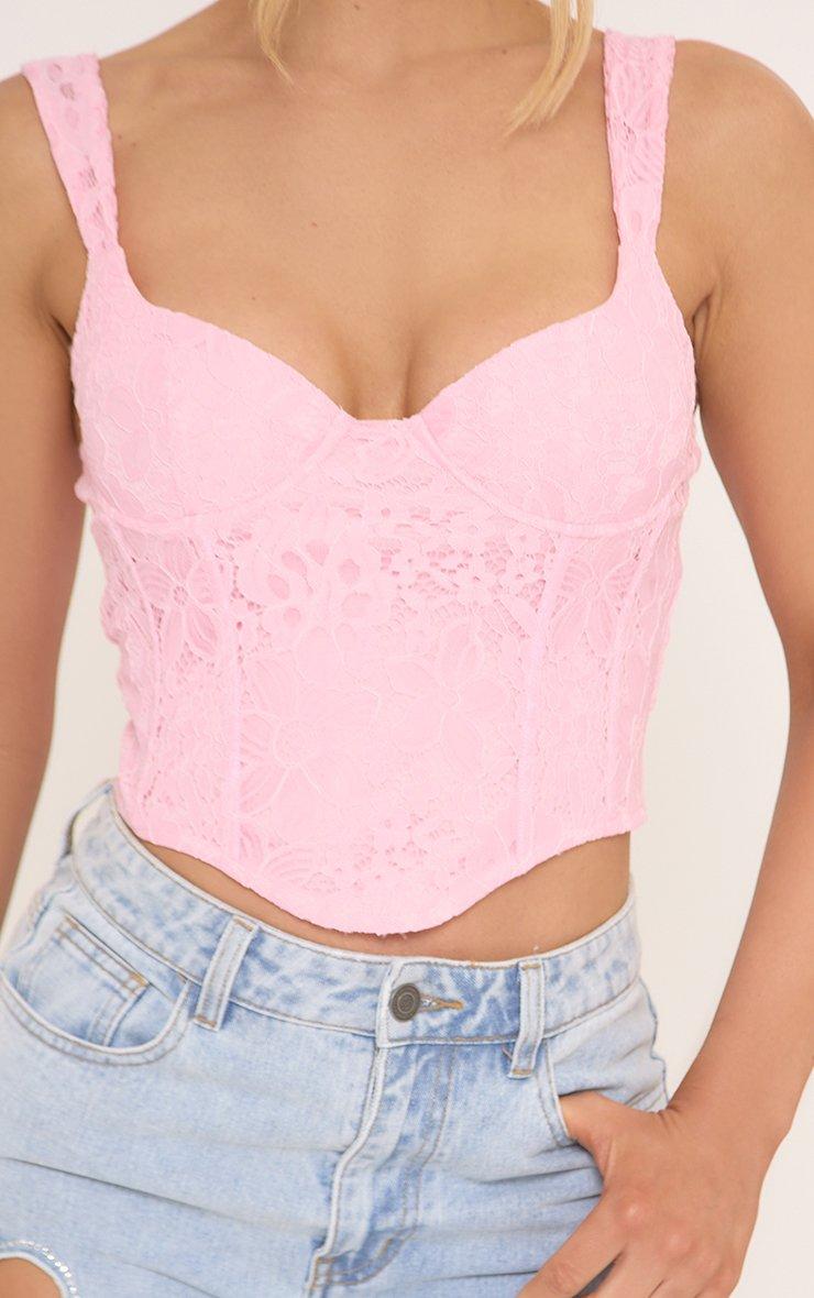 Sweetheart Neck Longline Corset Top In Pink Lace