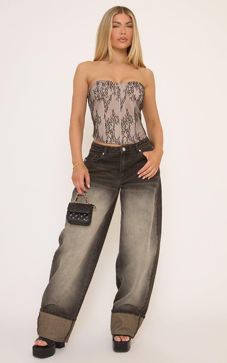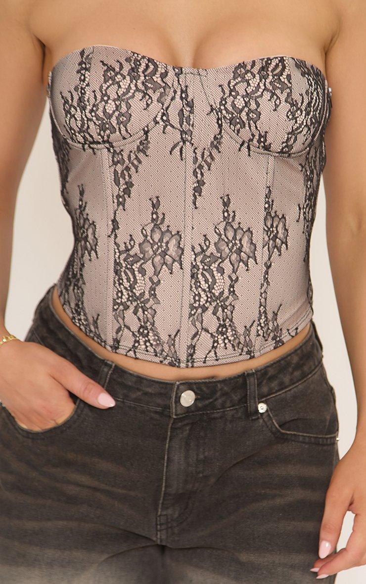 Bandeau Corset Top In Brown Lace