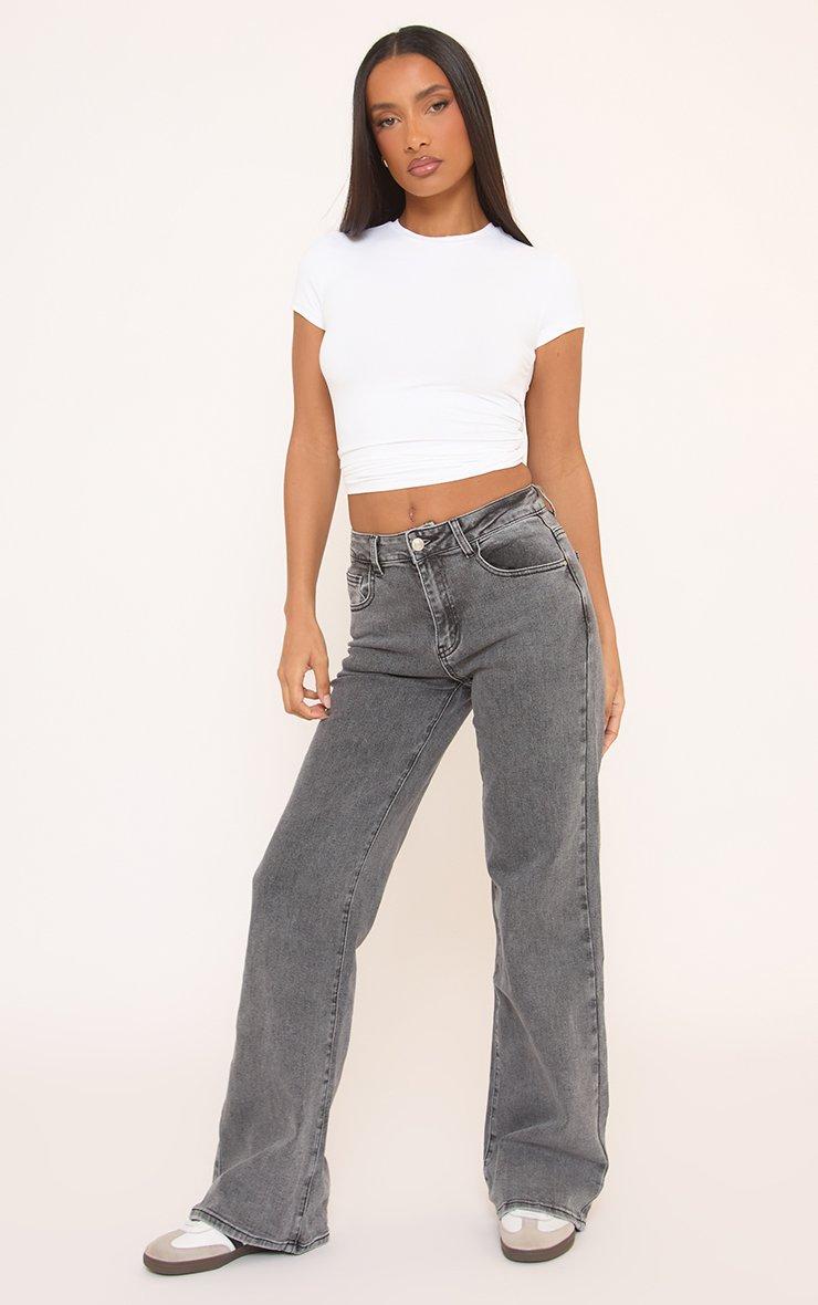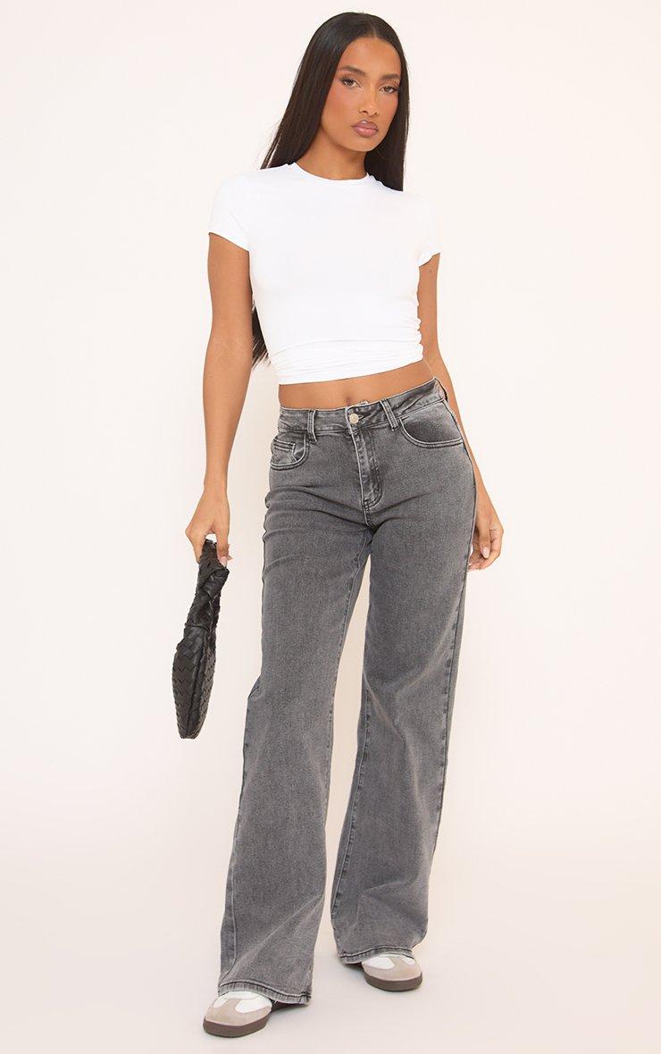 High Waist Wide Leg Stretchy Jeans In Grey Denim