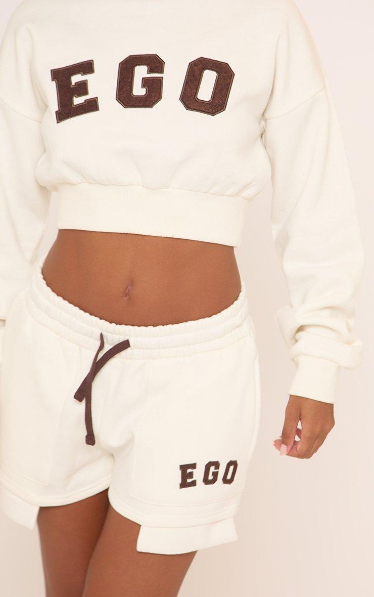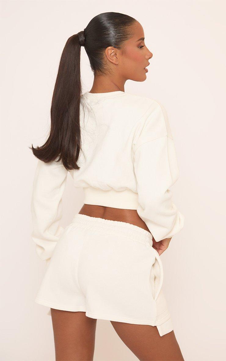 Mid Rise Embroidered Graphic Pocket Detail Sweat Shorts In Cream