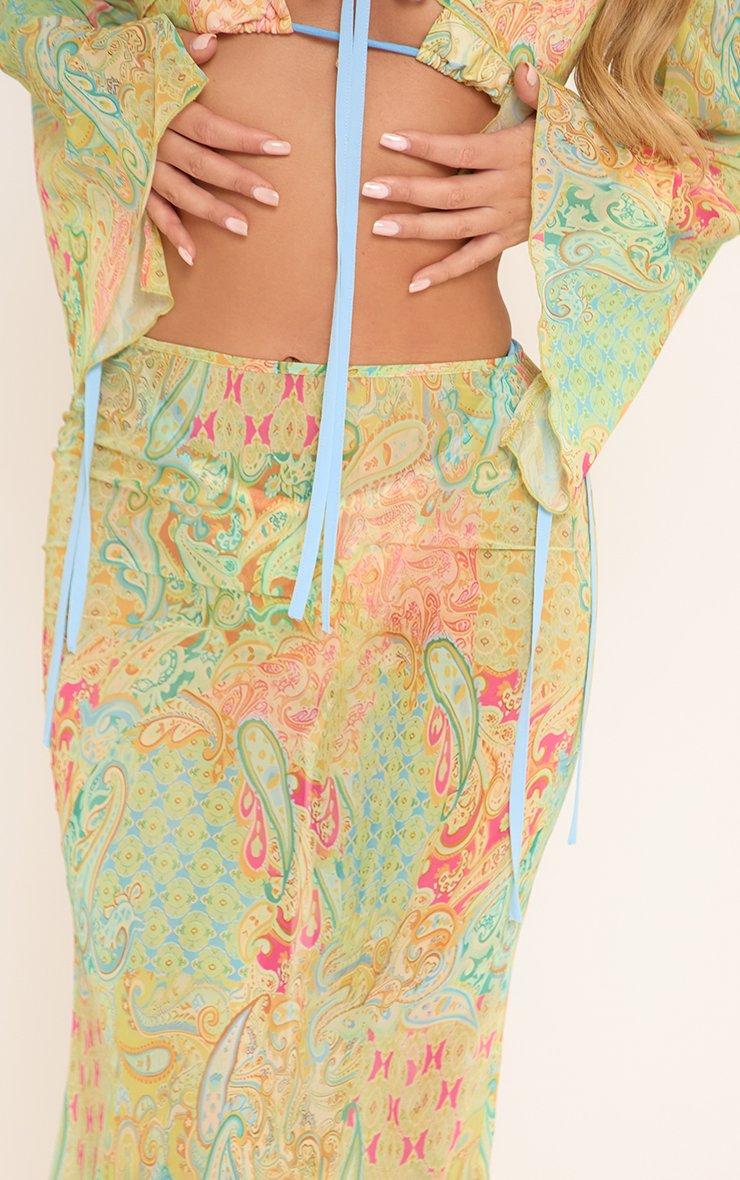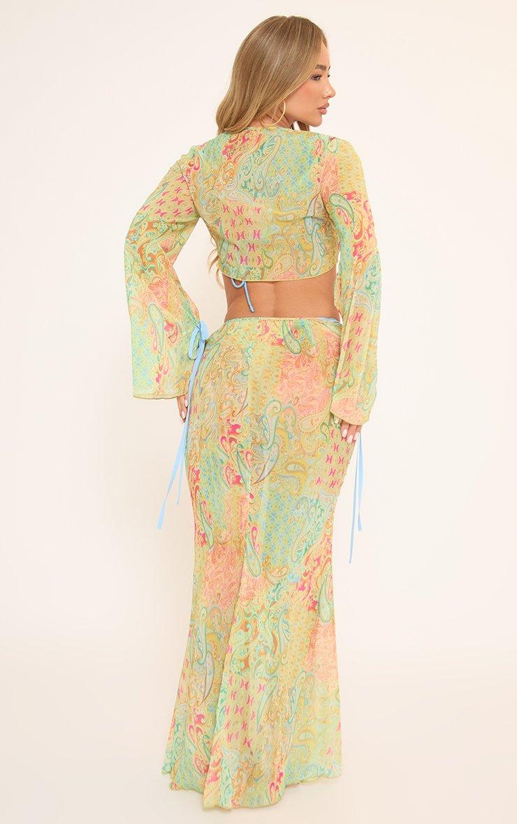 45764 Low Waist Fishtail Paisley Print Maxi Skirt In Multi