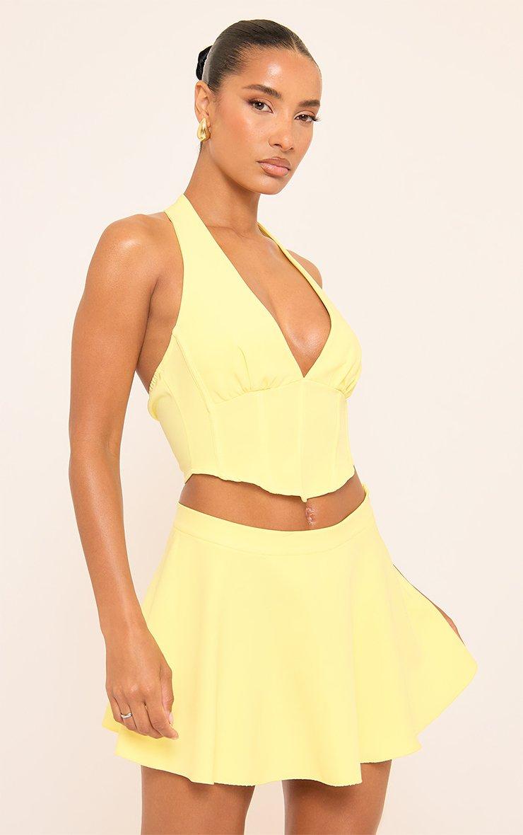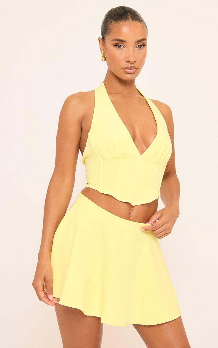 Plunge Halterneck Binding Detail Corset Top In Yellow