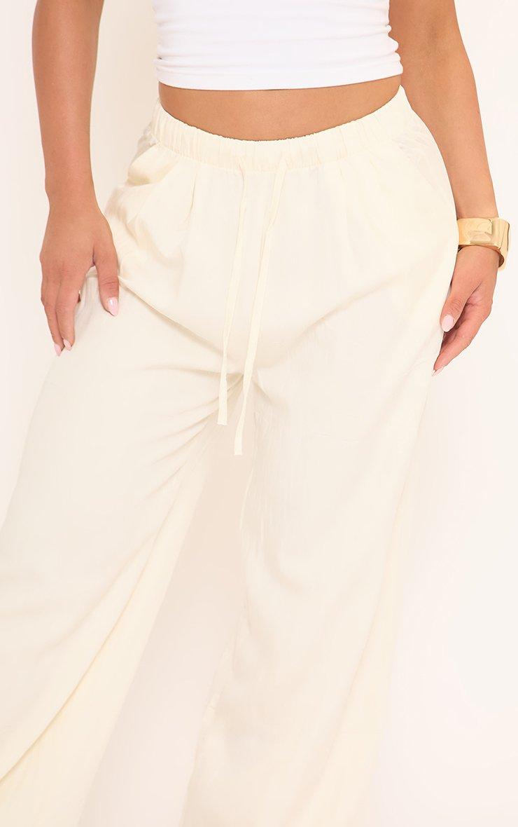 Mid Rise Tie Waist Detail Wide Leg Trousers In Cream Linen