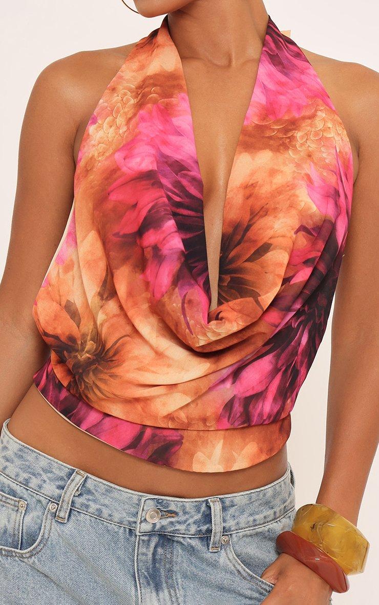 Halterneck Cowl Front Top In Multi Print Chiffon