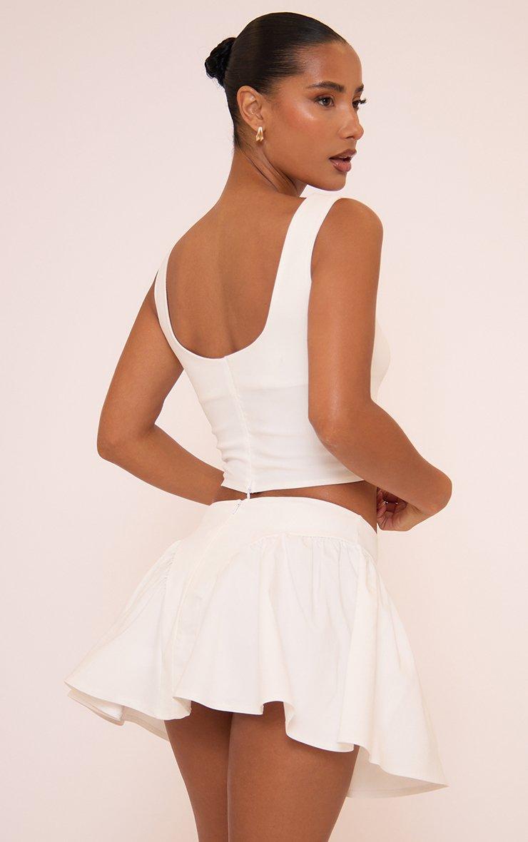 Mid Rise Voluminous Detail Mini Skater Skirt In White