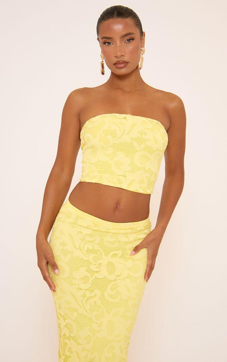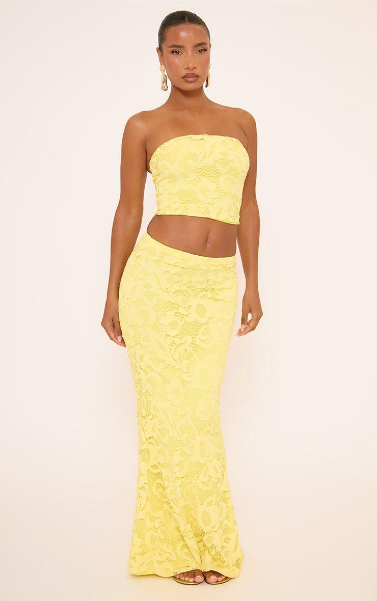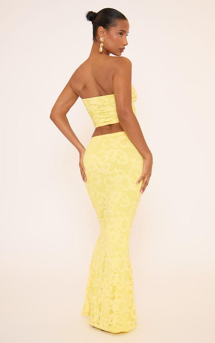 Bandeau Top And Maxi Skirt Co-Ord Set In Yellow Lace