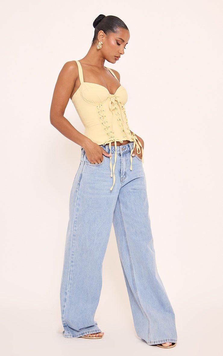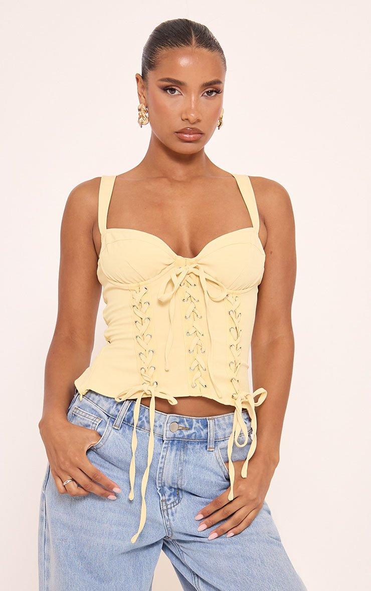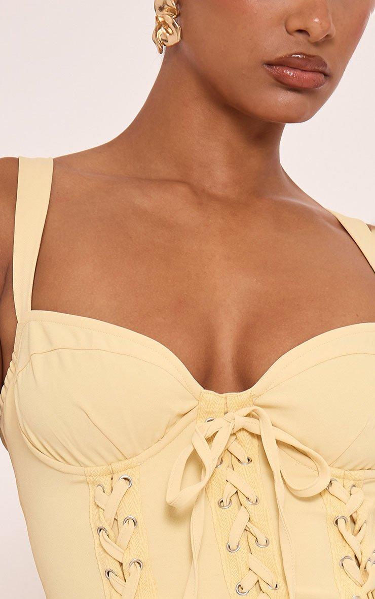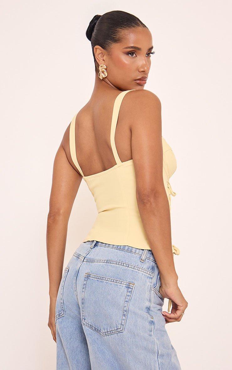 Sleeveless Lace Drape Detail Corset Top In Yellow