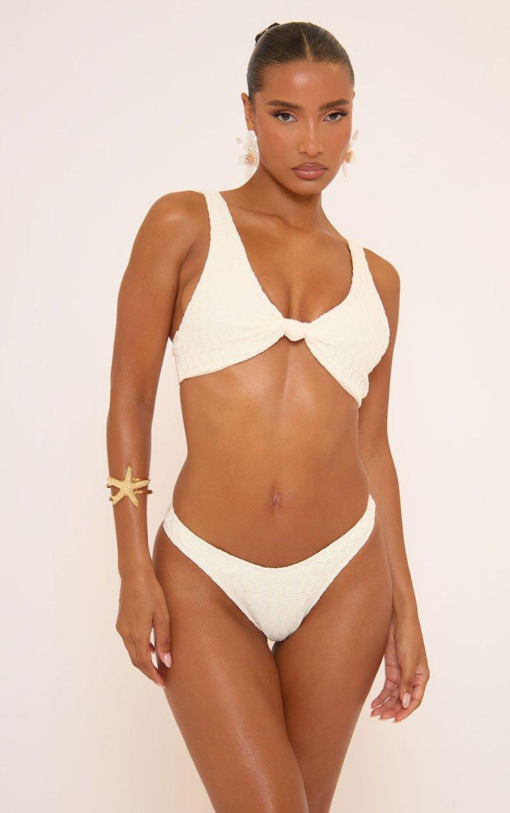Knot Front Bikini Set In Cream Textured