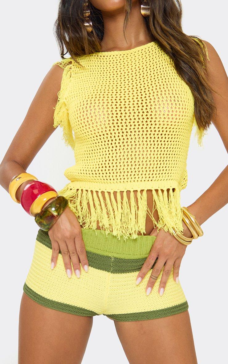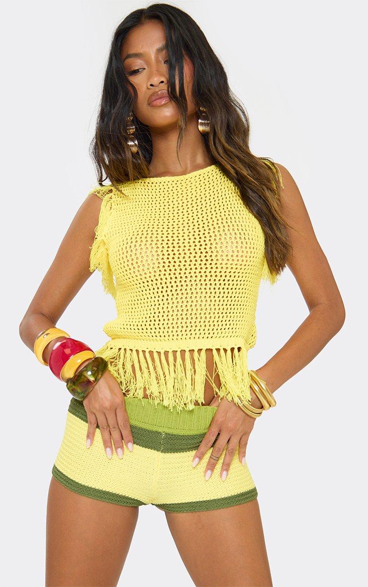 Sleeveless Fringe Detail Top In Yellow Knit