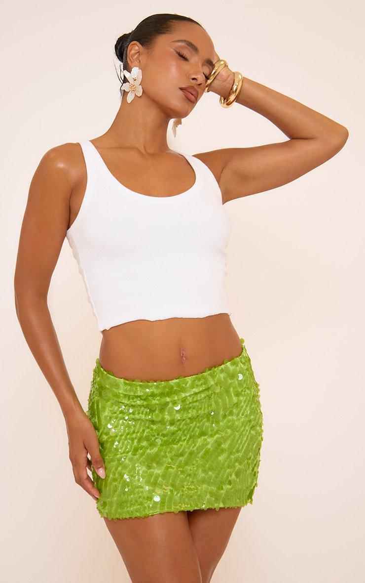 Mid Rise Mini Skirt In Lime Green Sequin