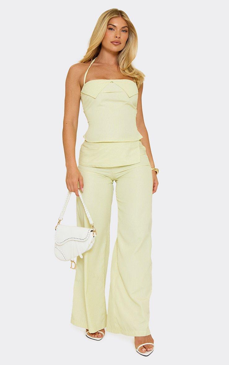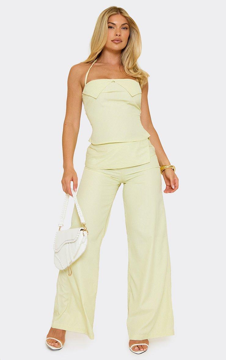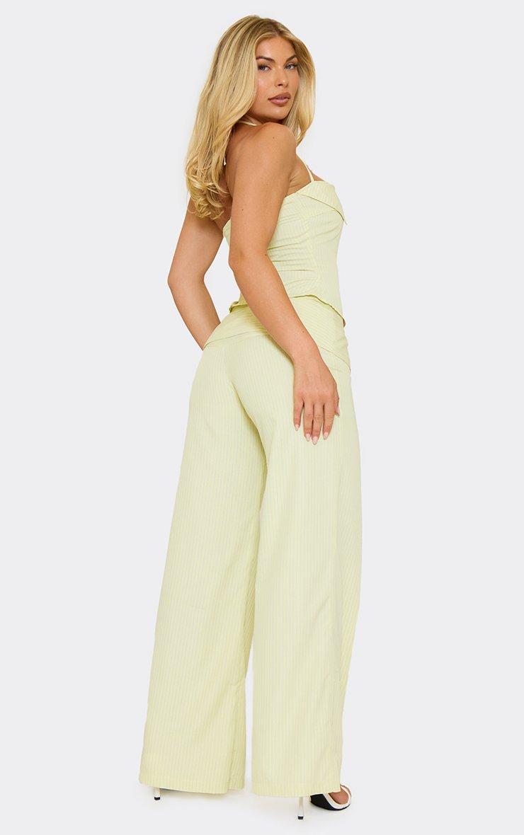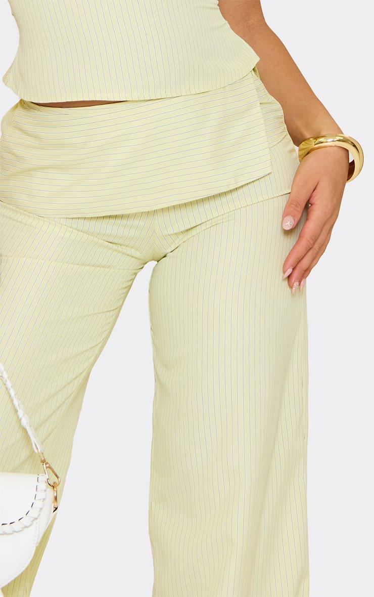 Fold Over Wide Leg Trousers In Yellow Stripe