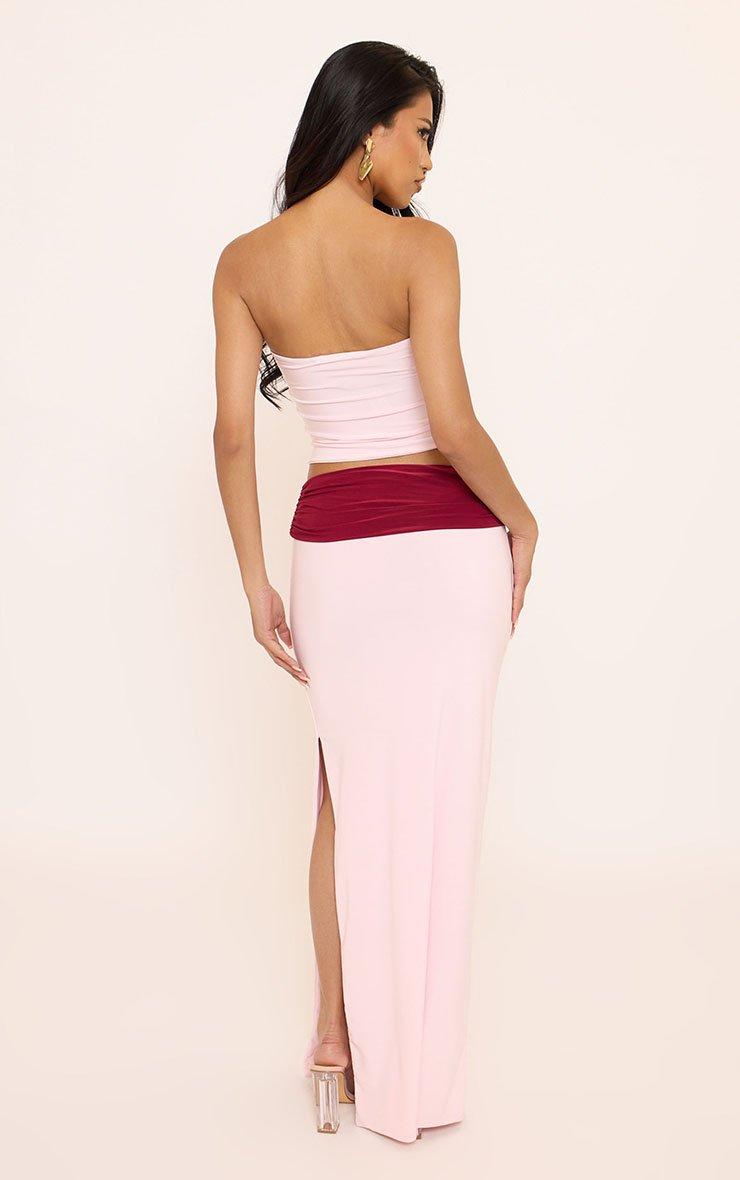 Mid Rise Contrast Foldover Waistband Maxi Skirt In Pink