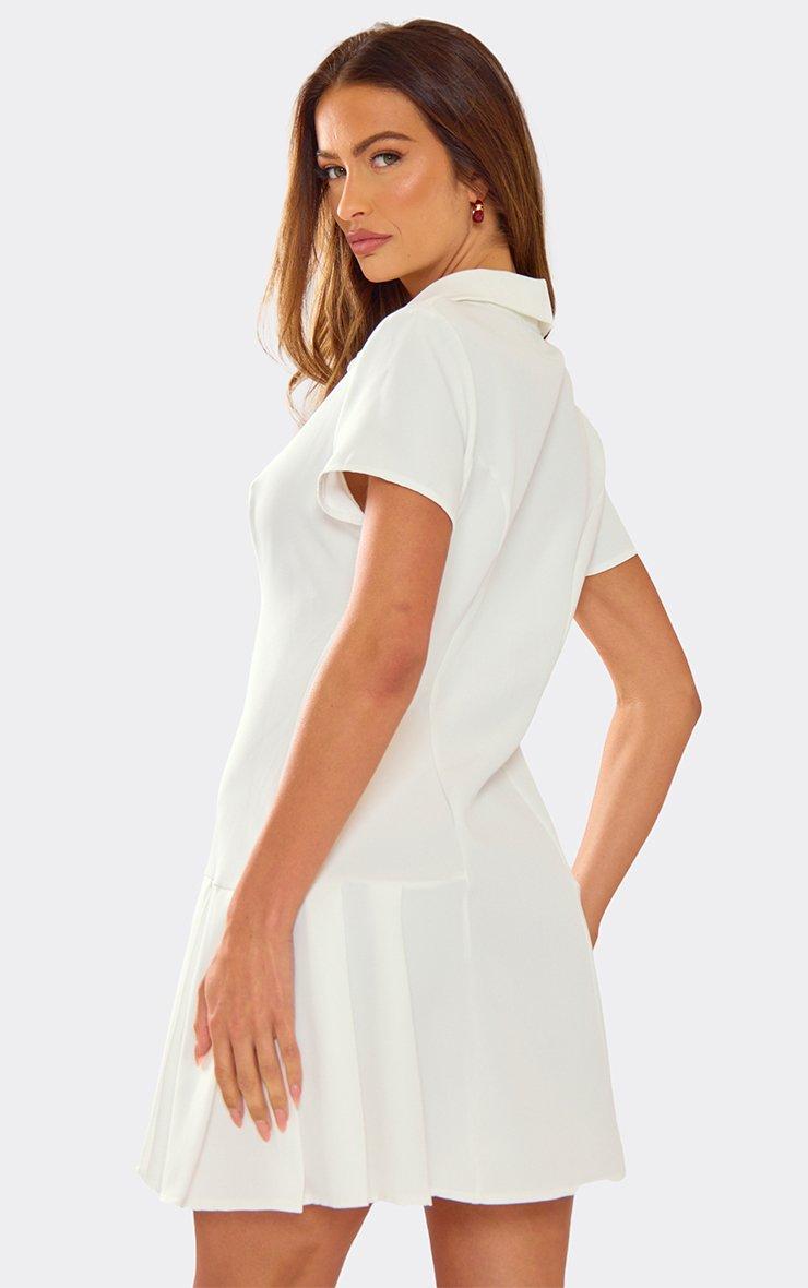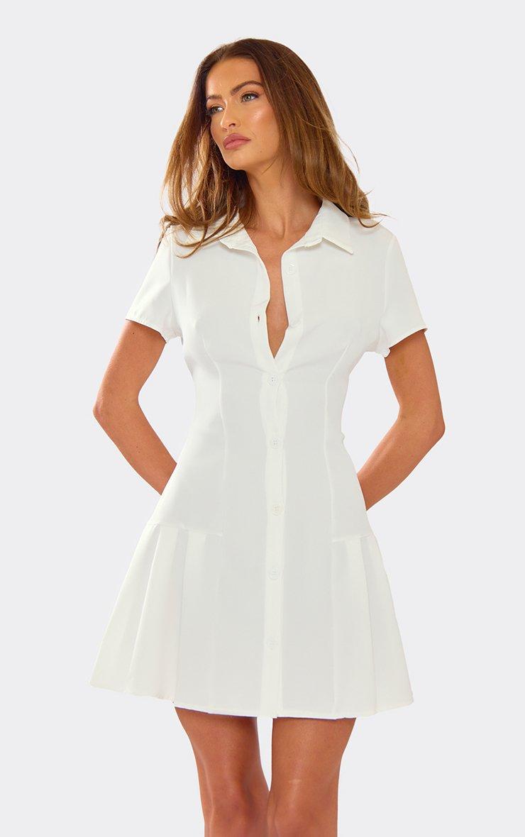Short Sleeve Cinched Waist Button Down Tailored Mini Dress In Cream
