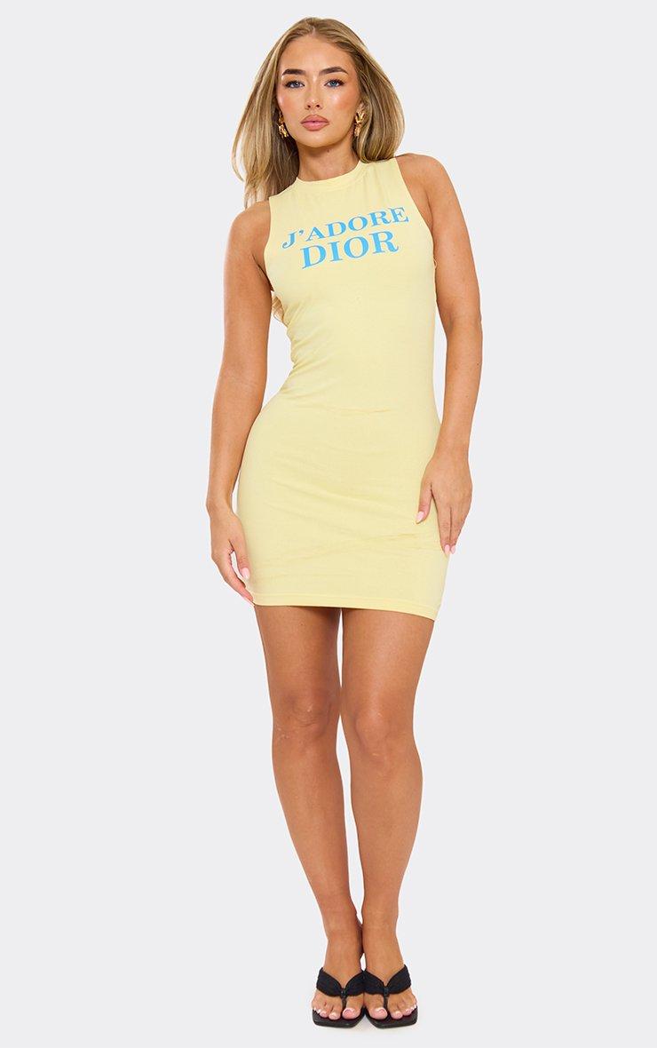 Sleeveless J'Dore Logo Graphic Detail Mini Dress In Yellow