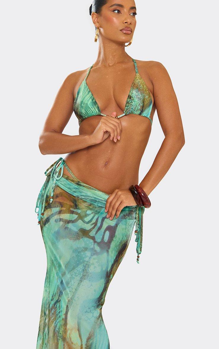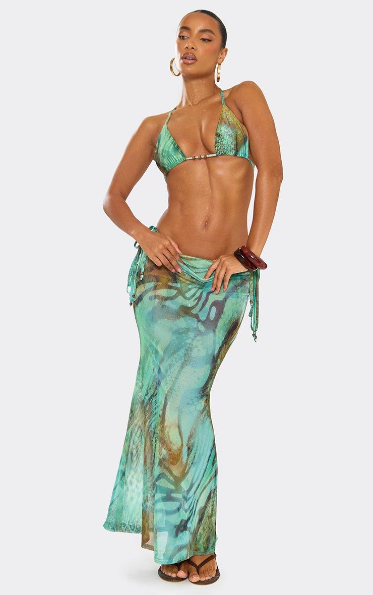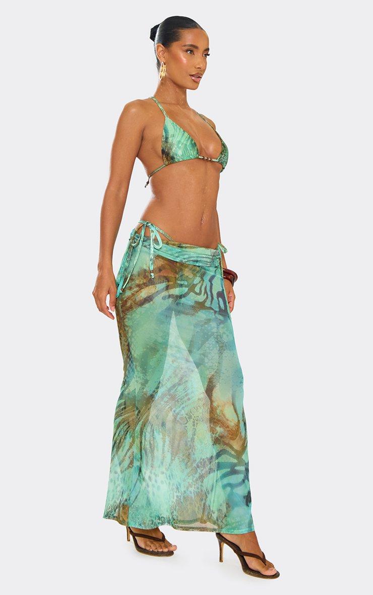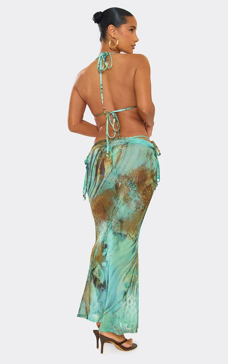 Mid Rise Ruched Detail Maxi Skirt In Green Multi Animal Print