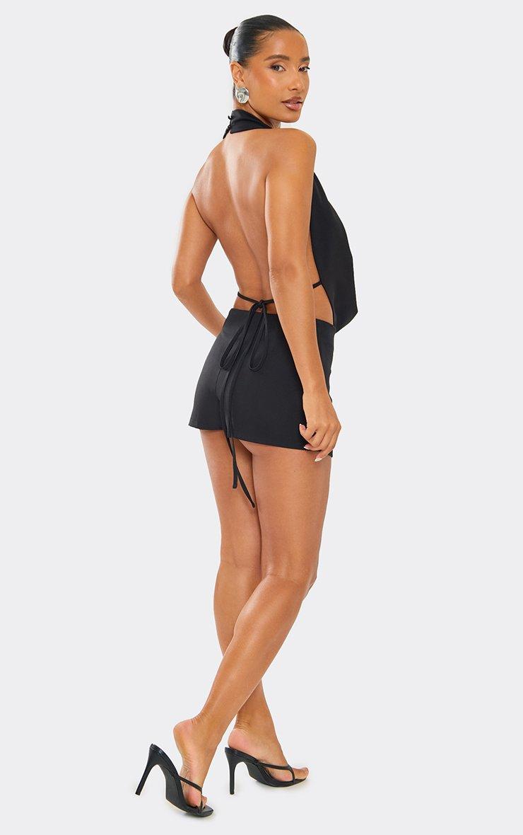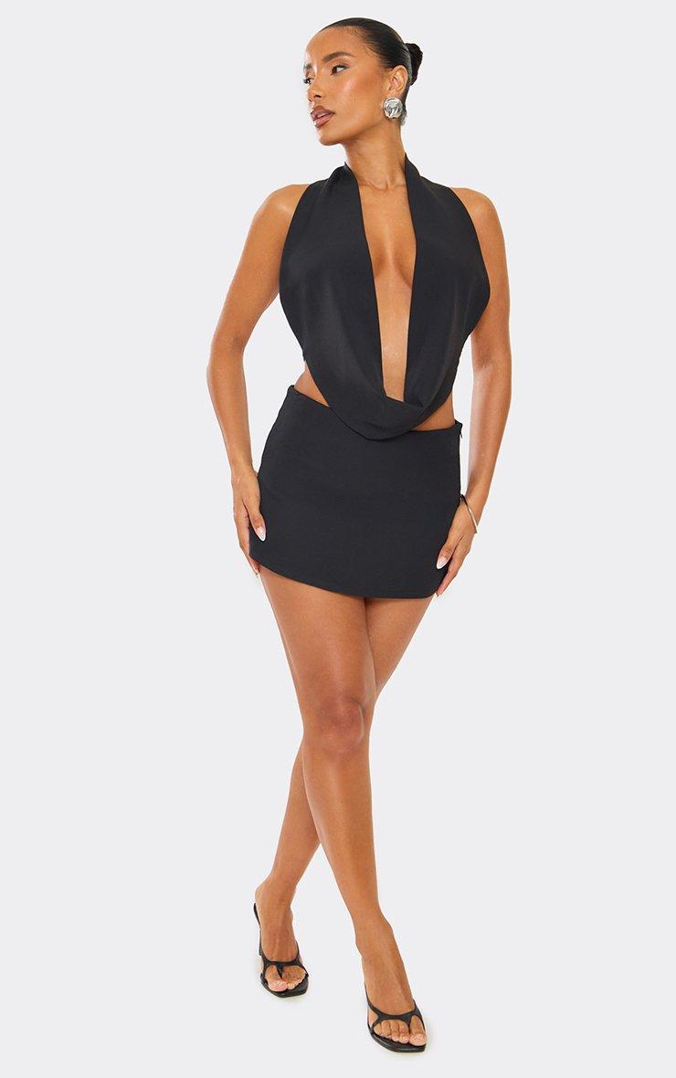 Low Rise Mini Skirt In Black Woven
