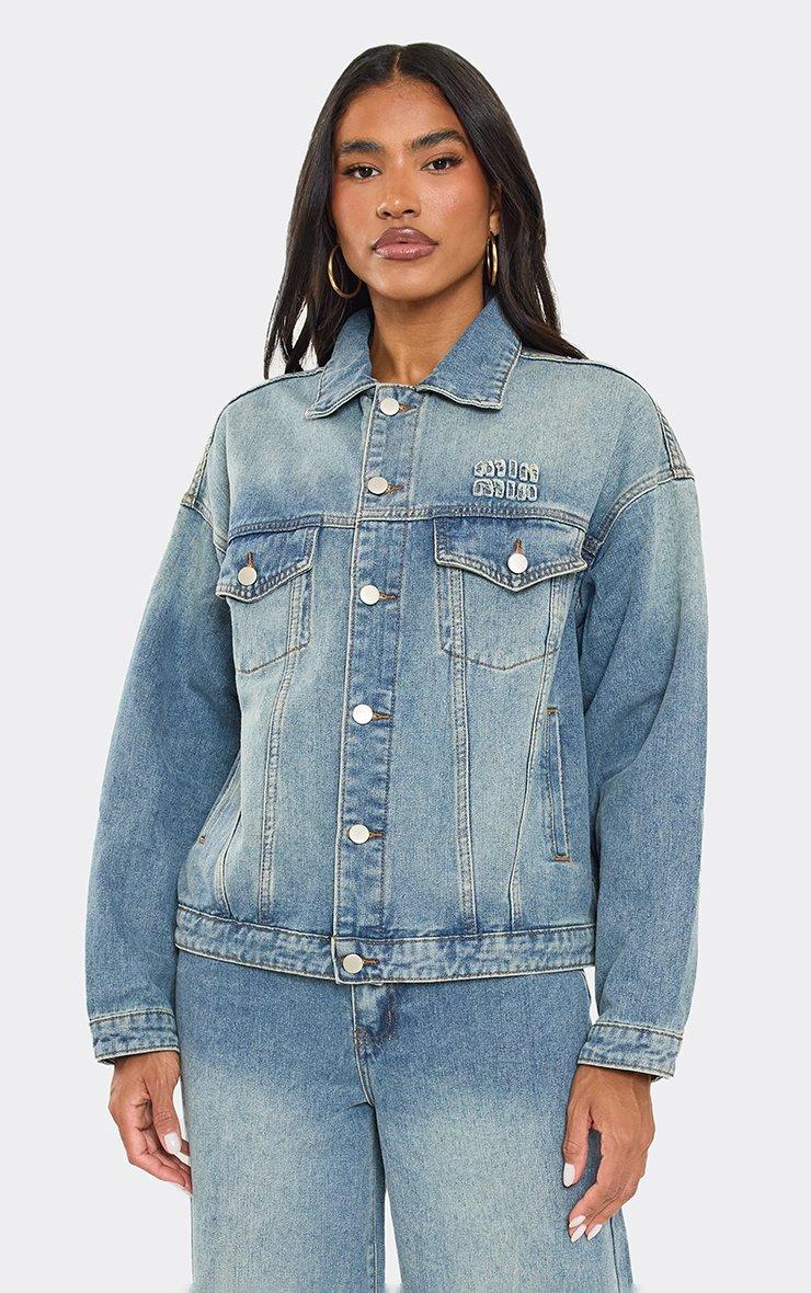 Long Sleeve Oversized Min Min Detail Jacket In Washed Blue Denim