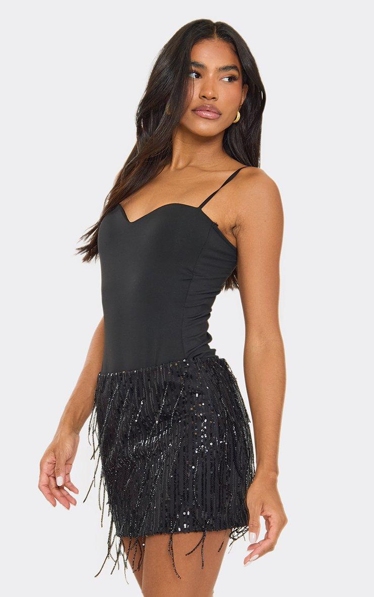 Mid Rise Tassel Detail Mini Skirt In Black Sequin