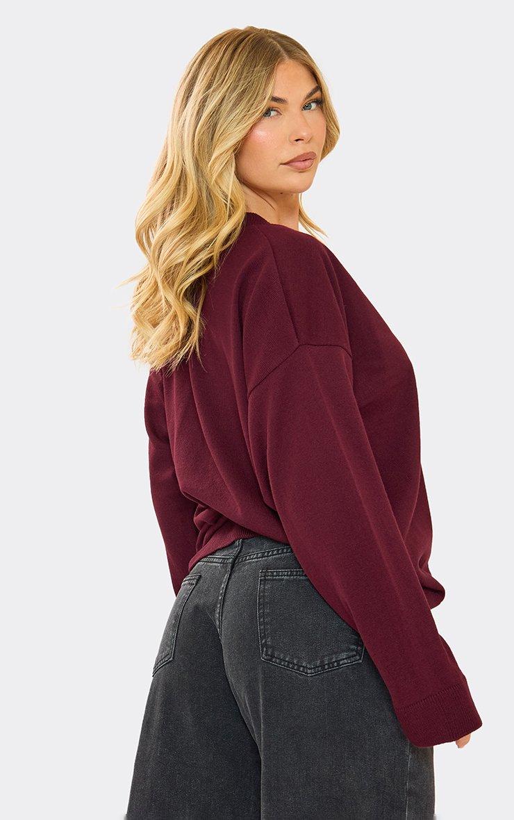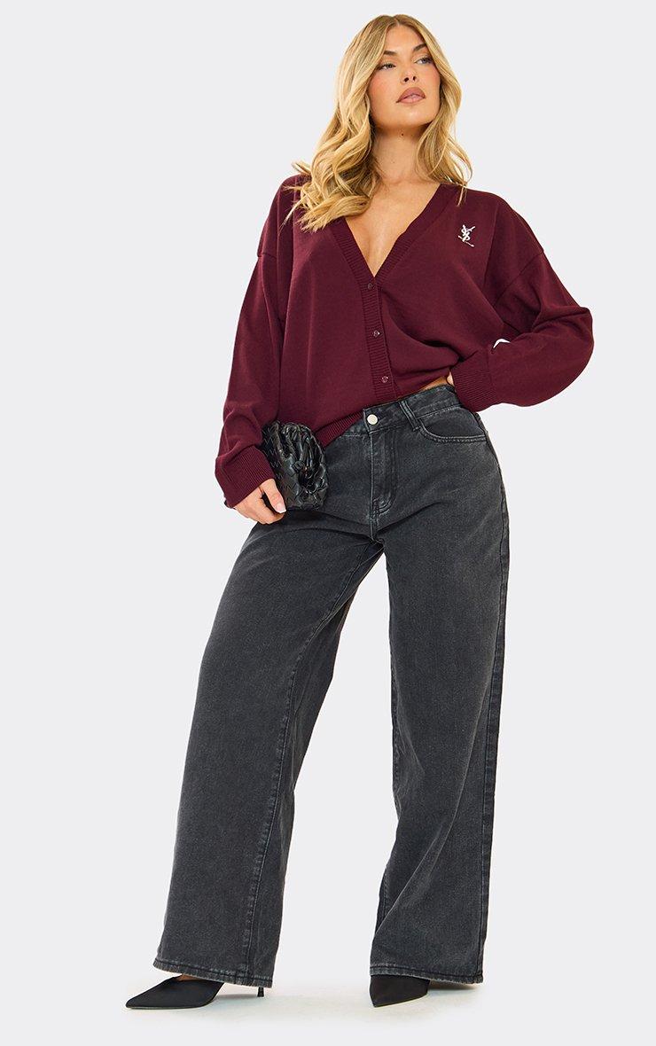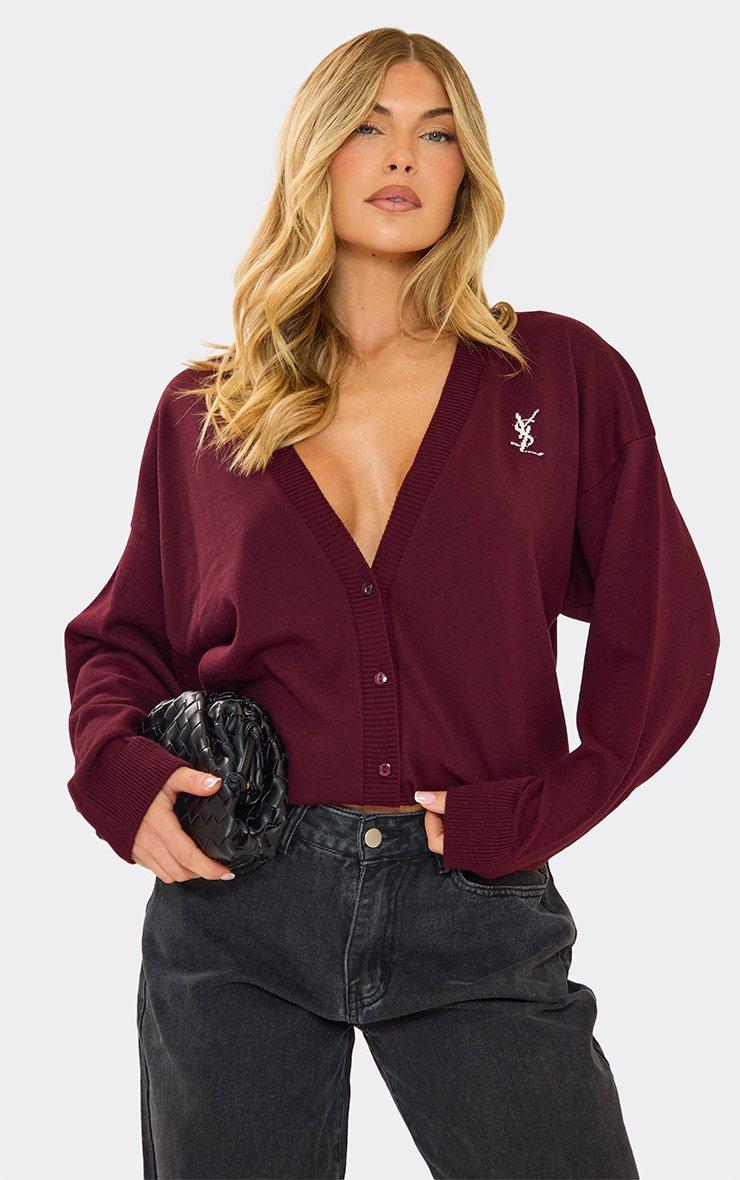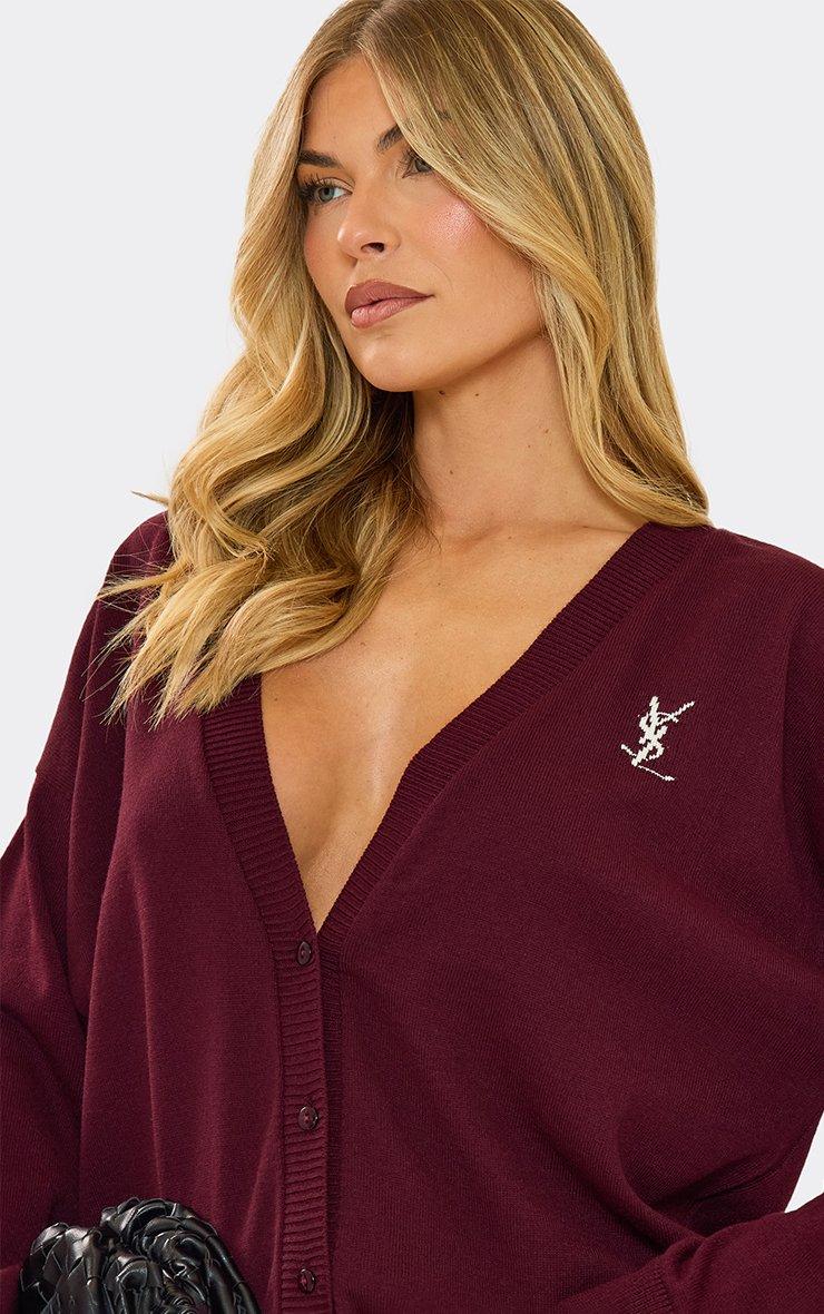 Oversized Logo Detail Button Down Cardigan In Burgundy Knit