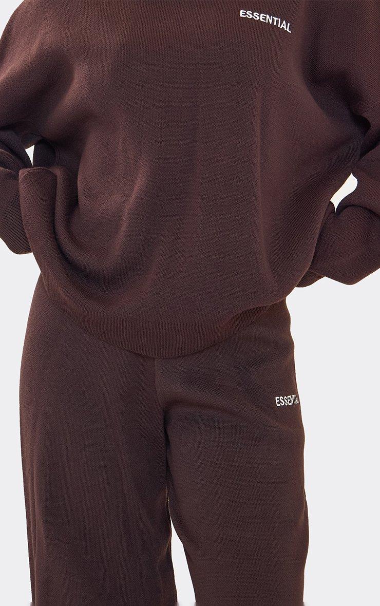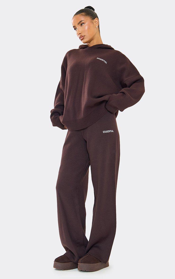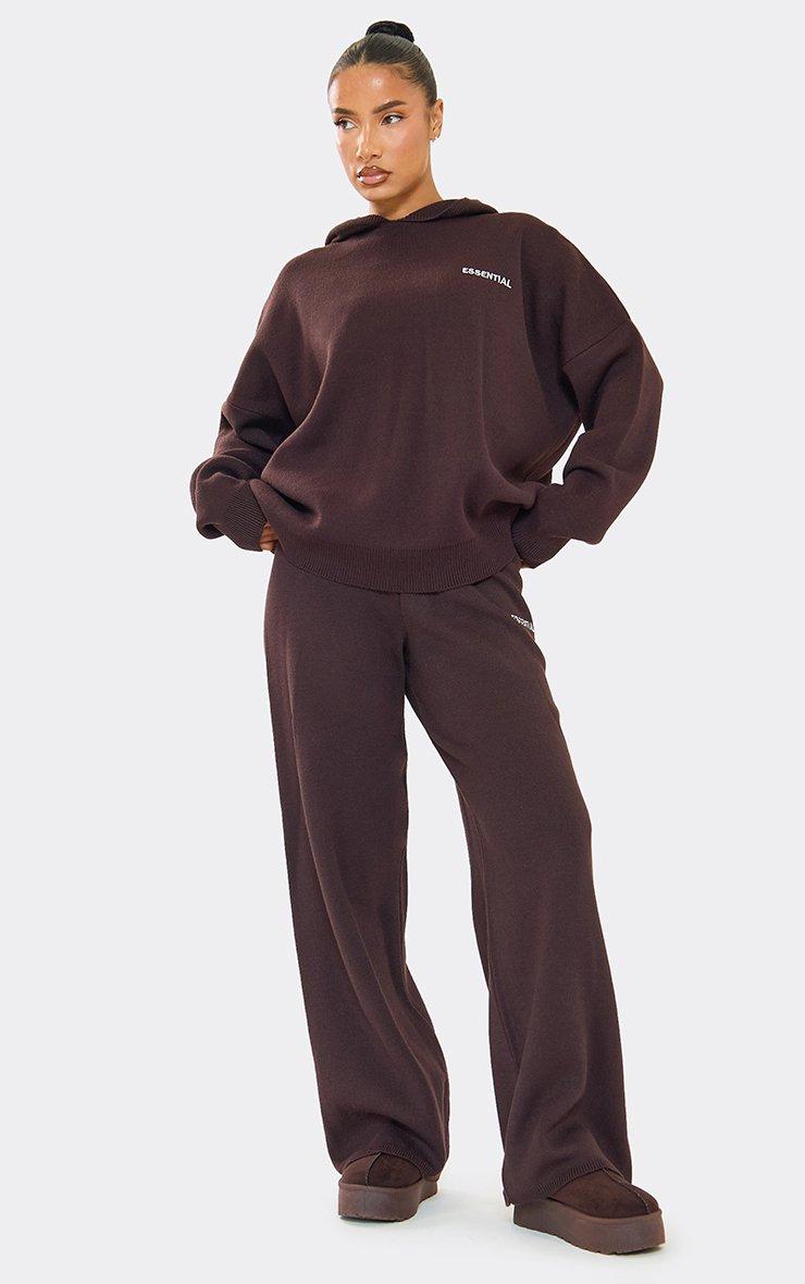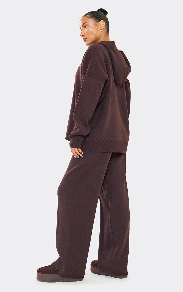Essential Wide Leg Knit Trousers In Chocolate Brown