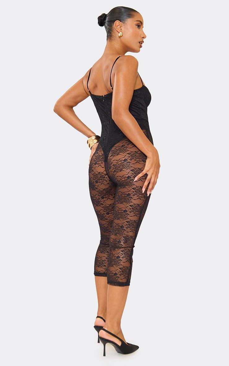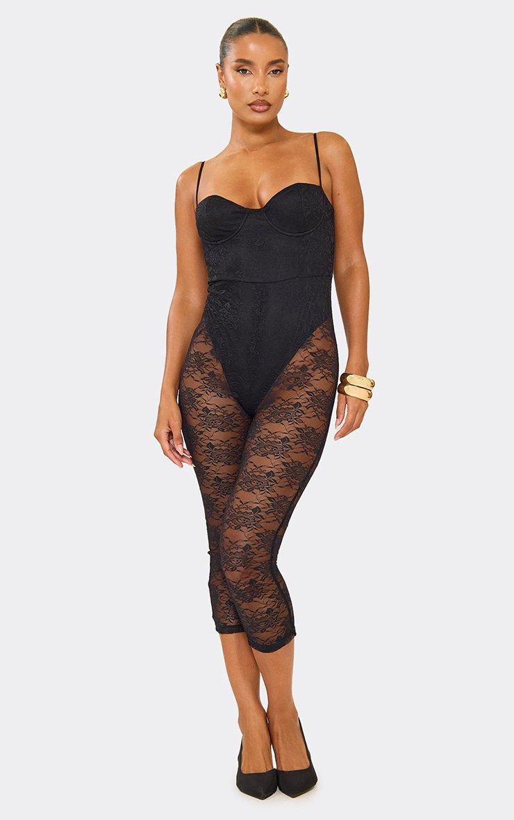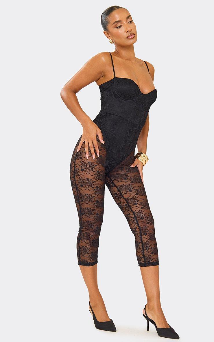Strappy Underwire Bodysuit Detail Capri Jumpsuit In Black Lace