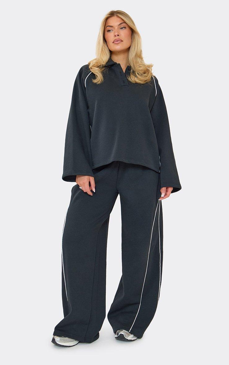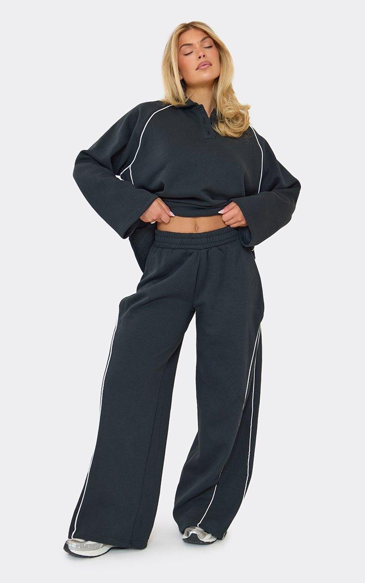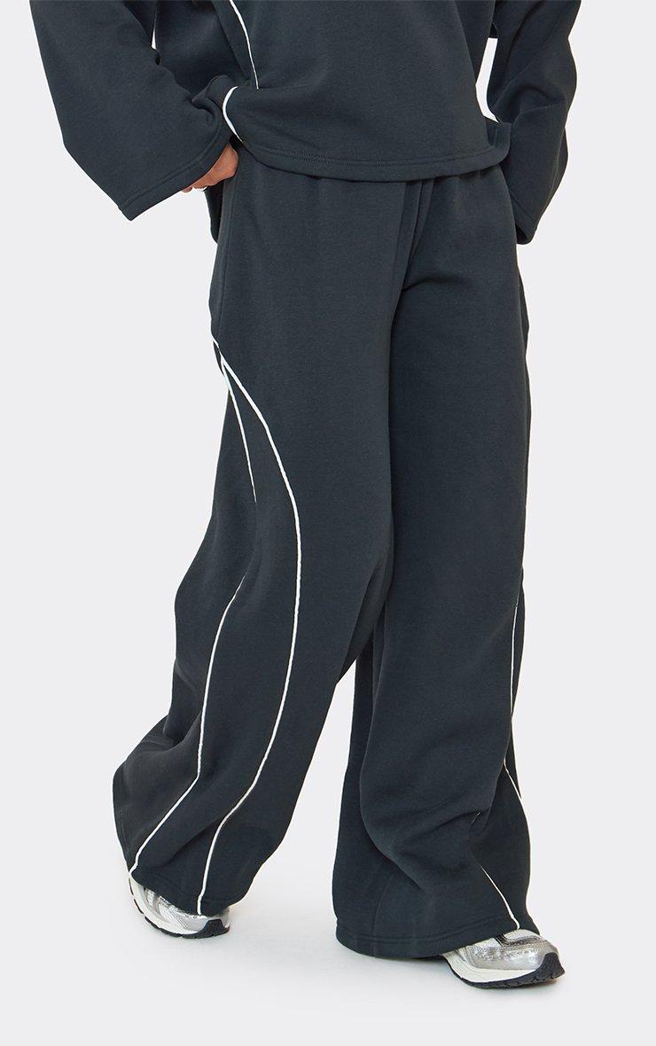 Low Rise Contrast Stripe Wide Leg Joggers In Navy Blue