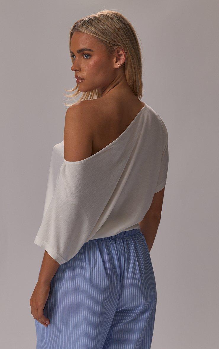 Short Sleeve Off The Shoulder Draped Top In White Modal Jersey