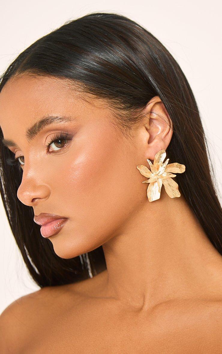 Oversized Flower Stud Earrings In Gold
