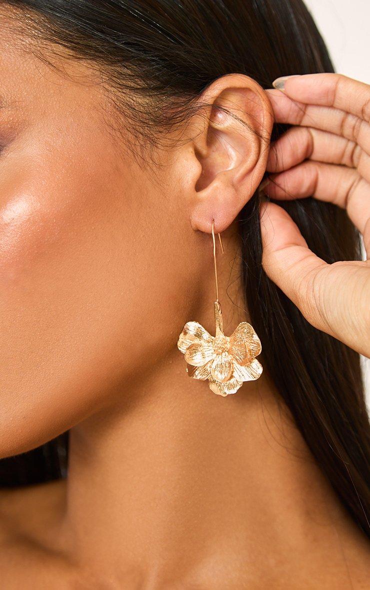 Flower Detail Delicate Drop Earring In Gold