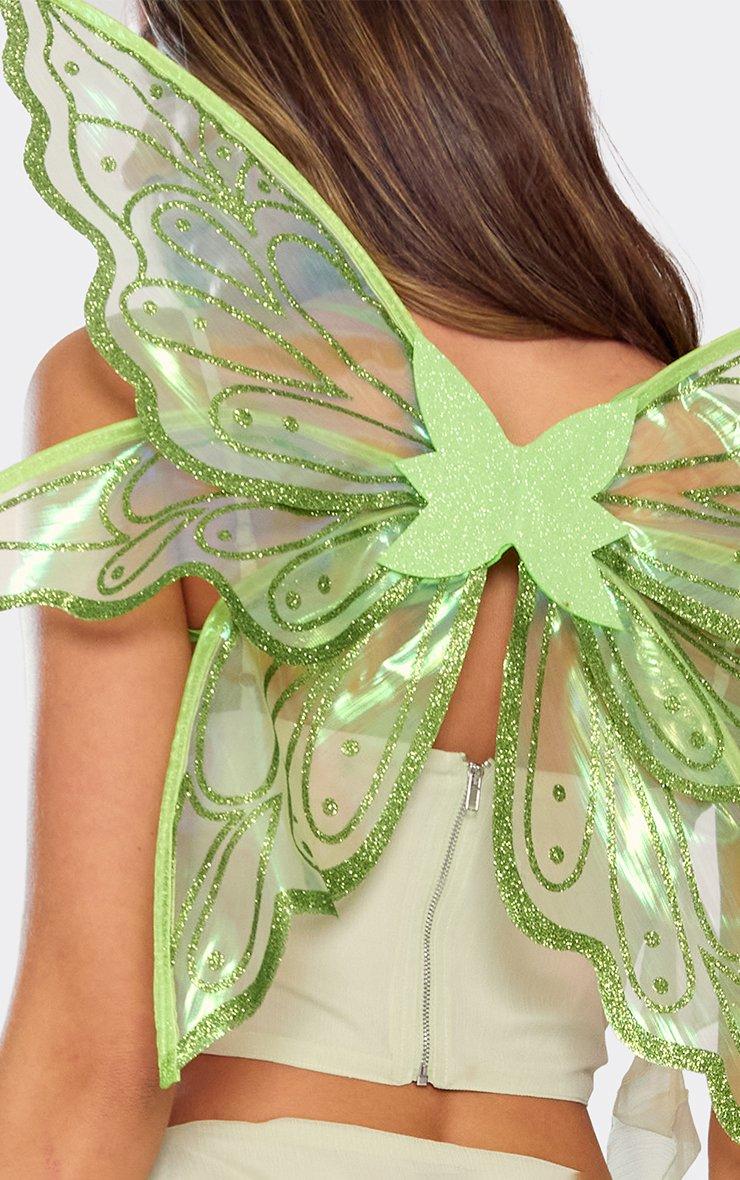 Glitter Mesh Detail Fairy Wings In Green