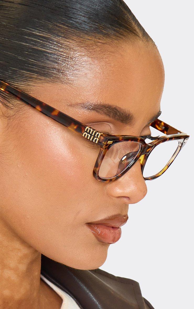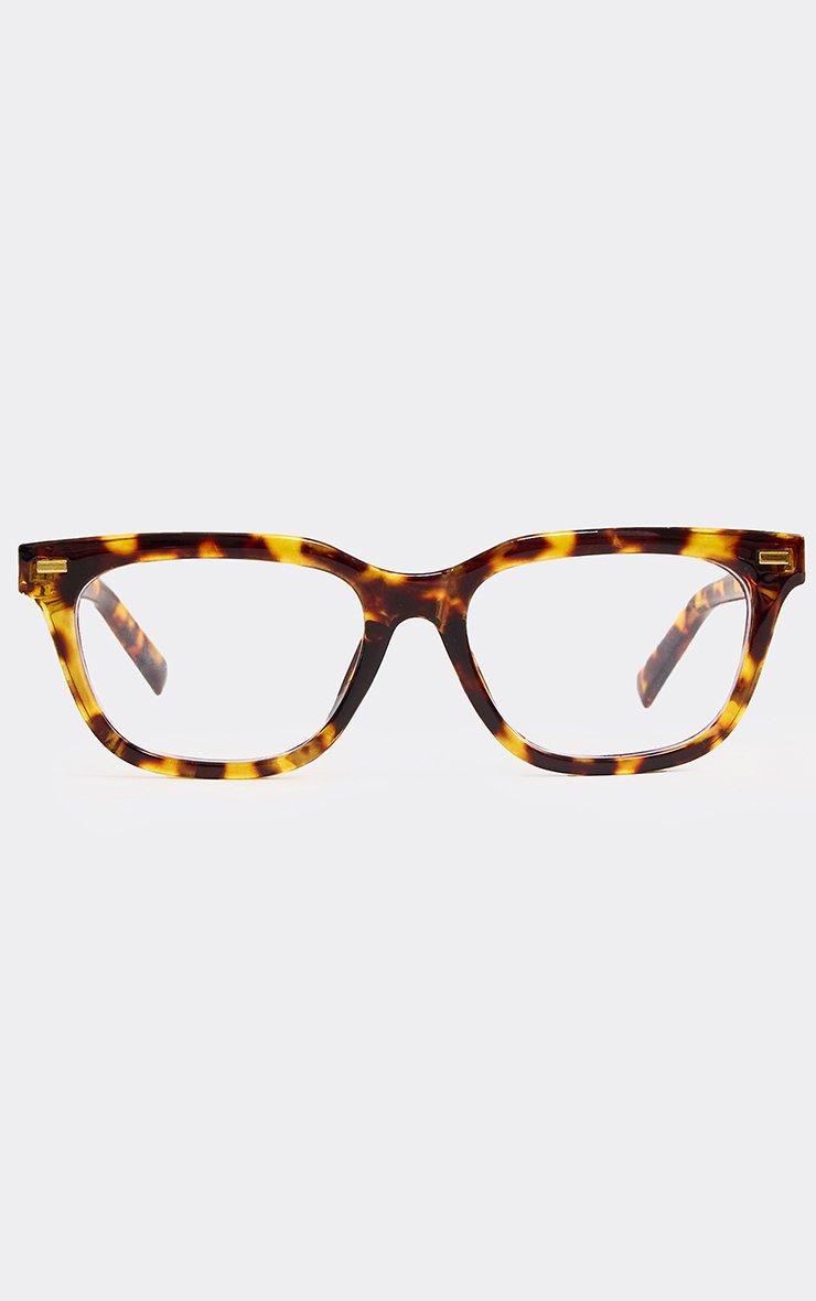 Clear Lense Min Min Slogan Shaped Glasses In Leopard Print