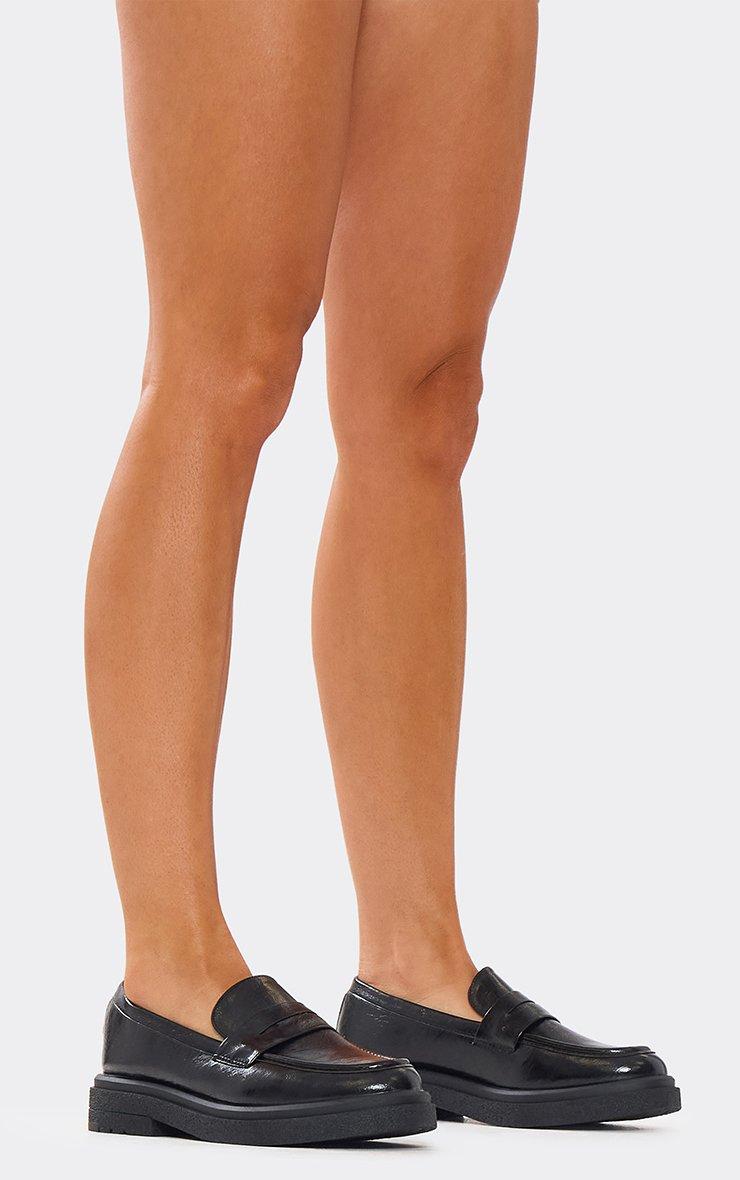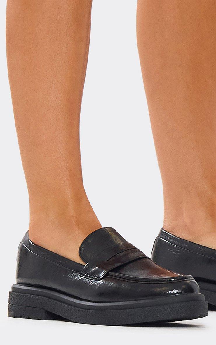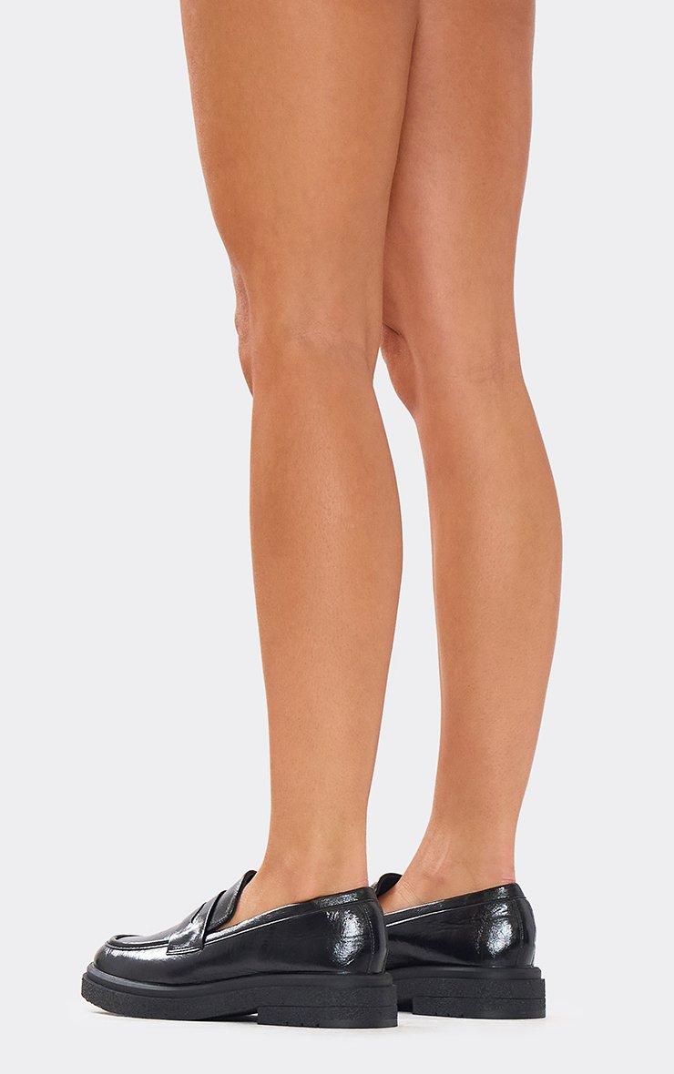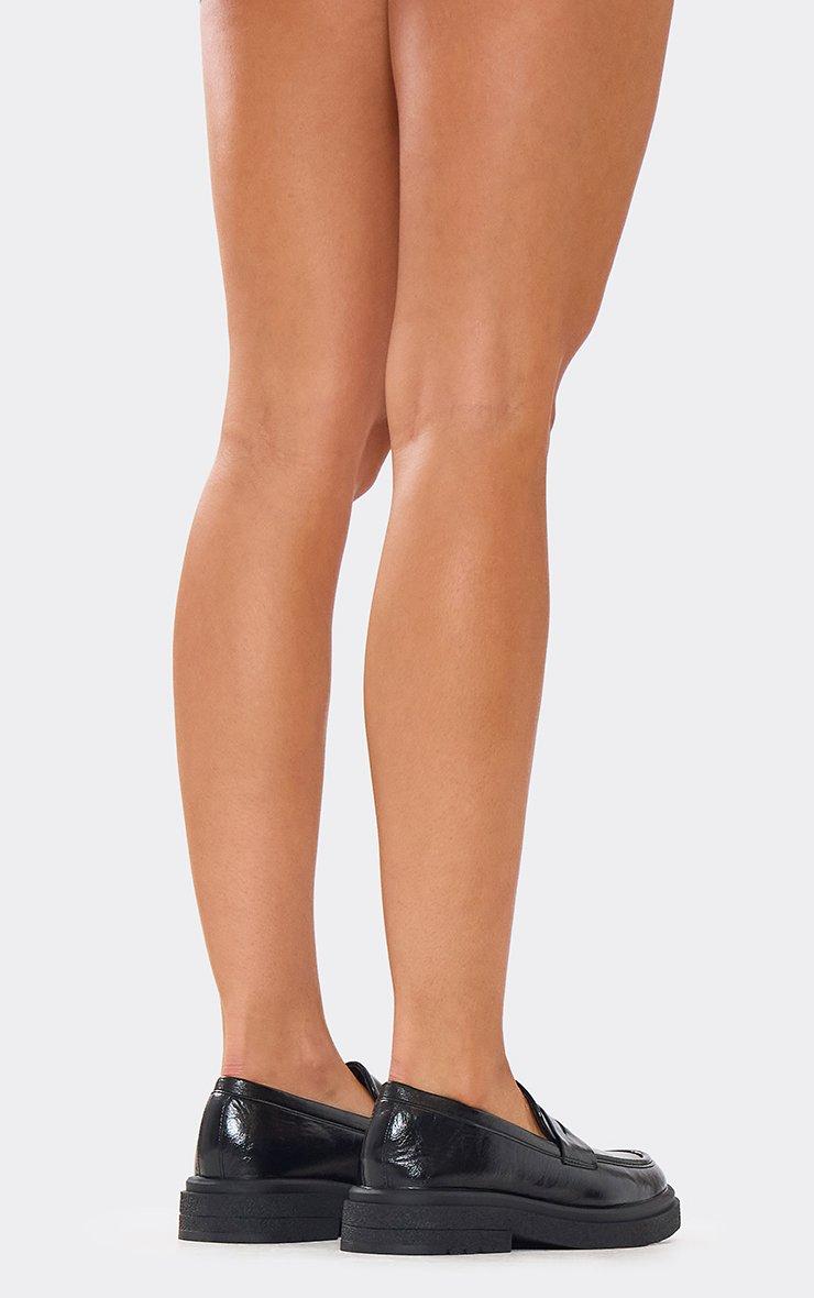 Frito Chunky Sole Flat Loafers In Black Faux Leather